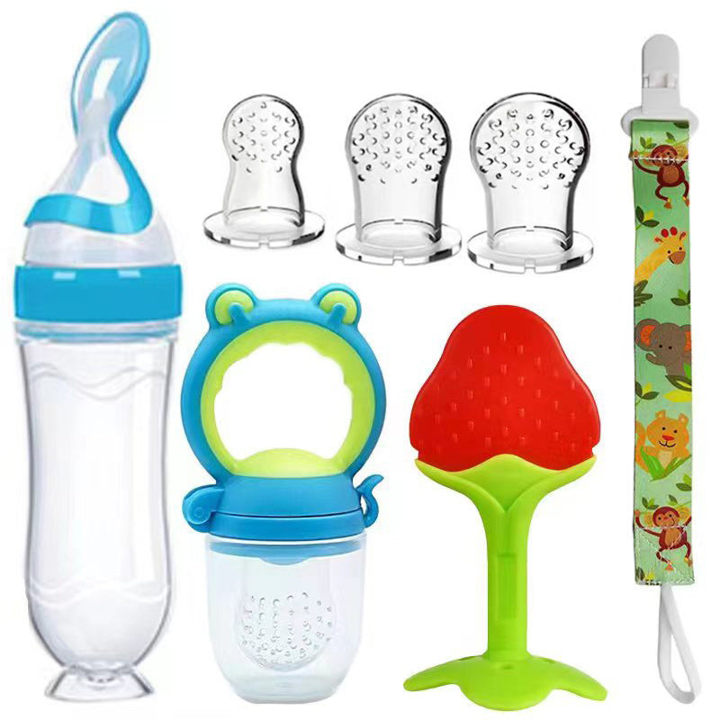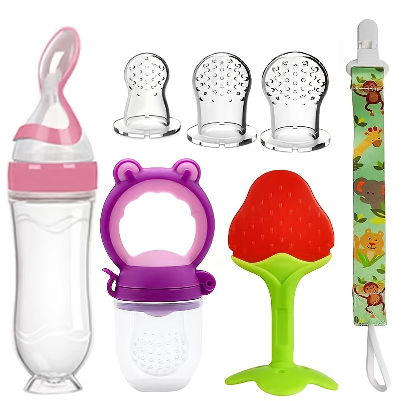 Набор для кормления малыша, 7 предметов, силиконовая бутылочка, ложка, поильник, соска, прорезыватель, зажимы