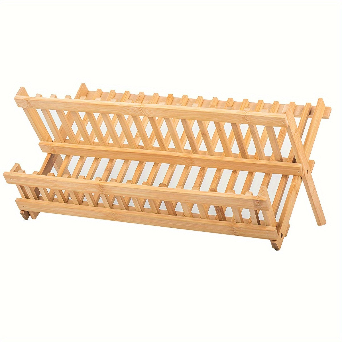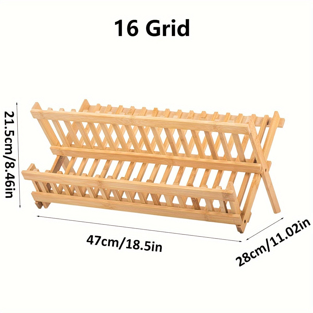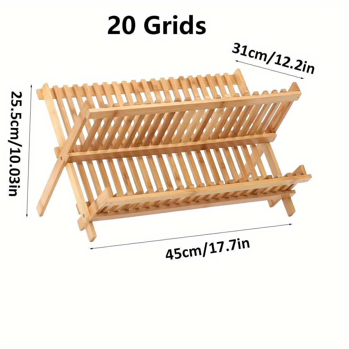 Бамбуковая сушилка для посуды со складной конструкцией - сушилка для кухонных тарелок и мисок - компактное хранение (16/20 решеток)