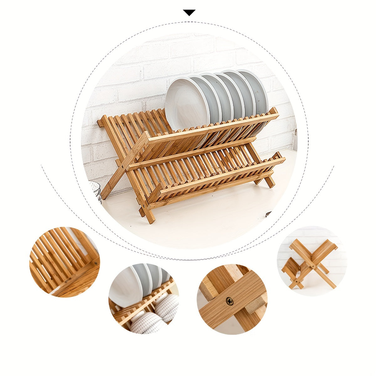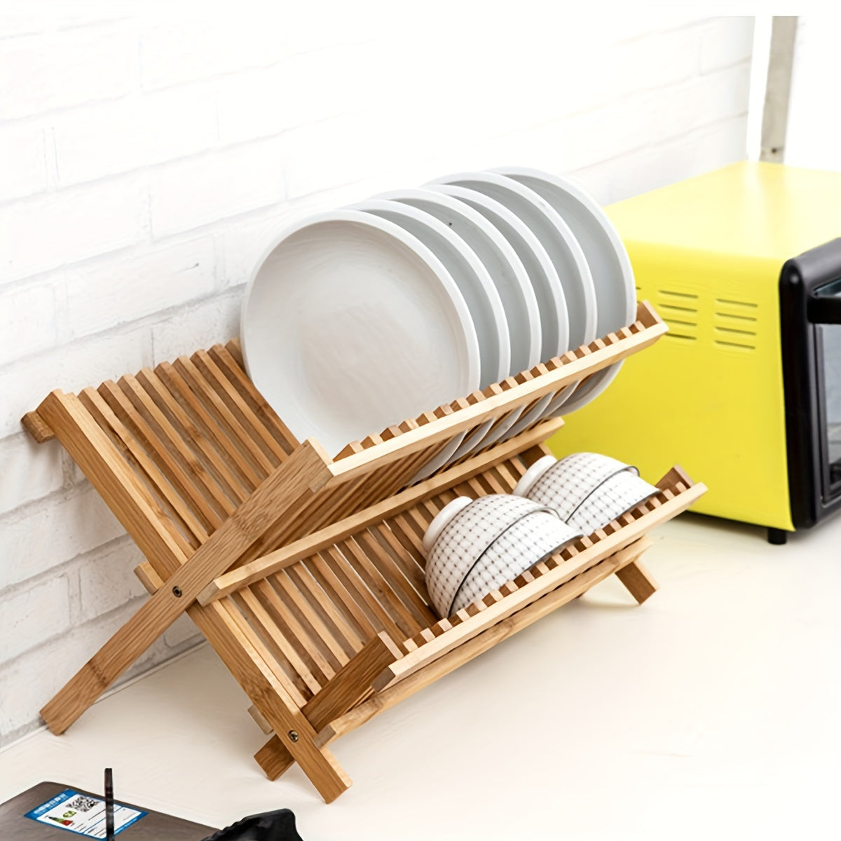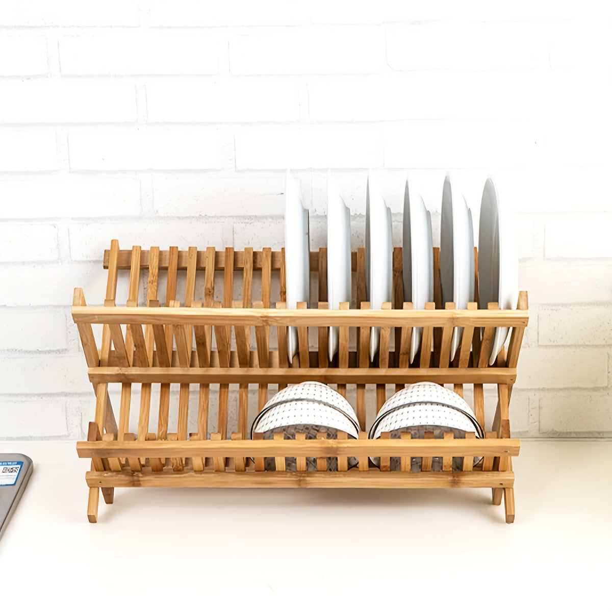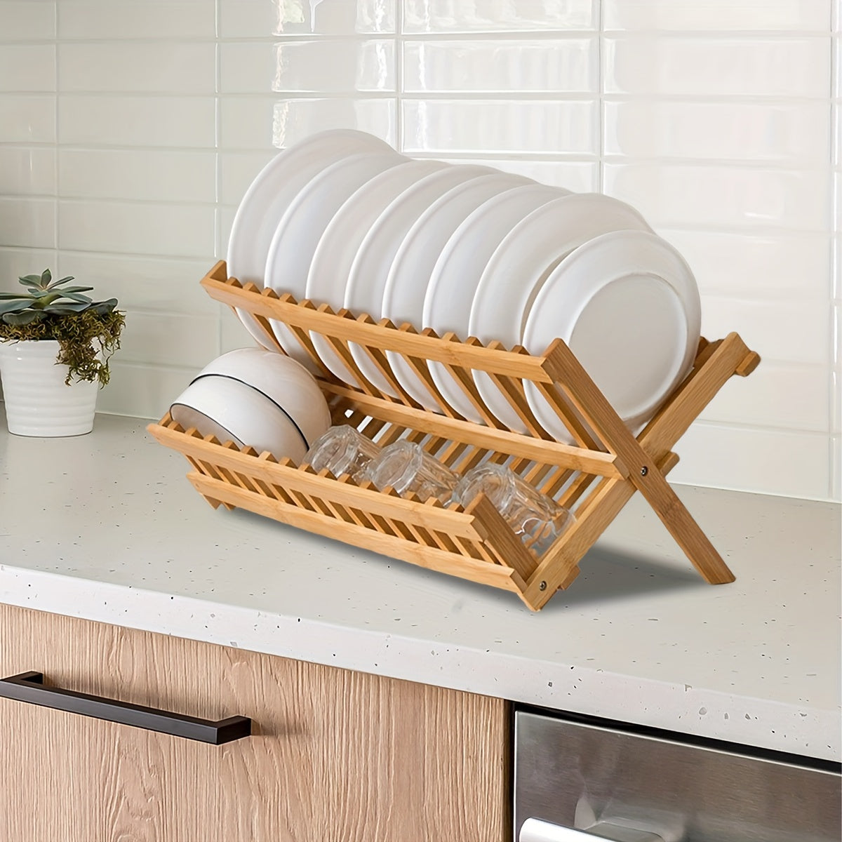 Бамбуковая сушилка для посуды со складной конструкцией - сушилка для кухонных тарелок и мисок - компактное хранение (16/20 решеток)