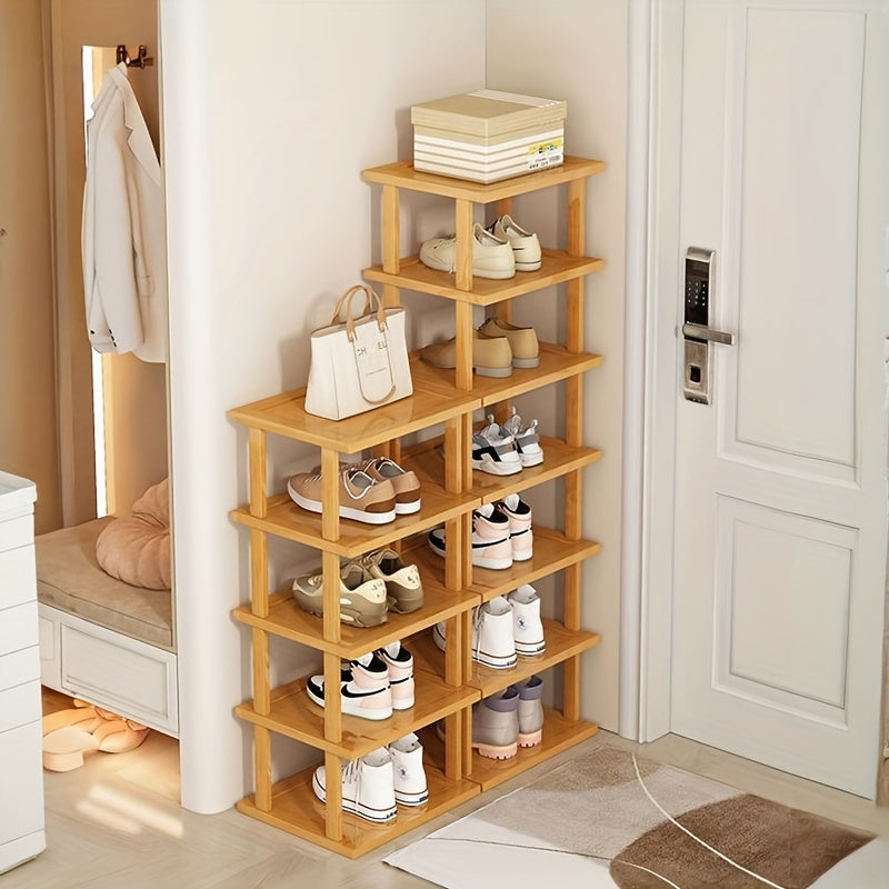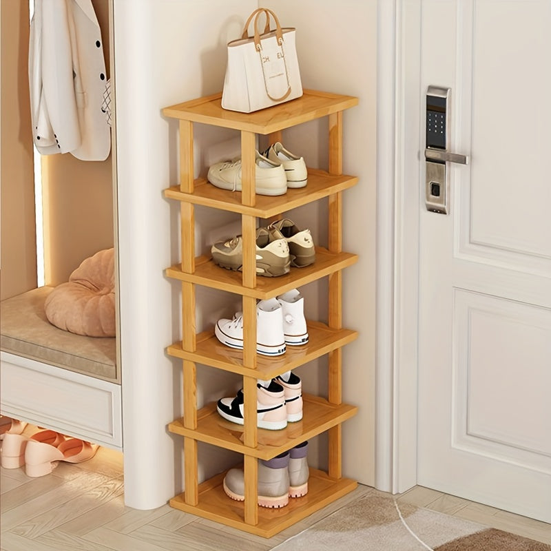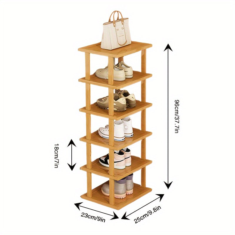 Бамбуковая полка для обуви с 6 ярусами, отдельно стоящий вертикальный органайзер для обуви, компактное решение для хранения в любой комнате, быстрая и простая сборка, не требуется электричество