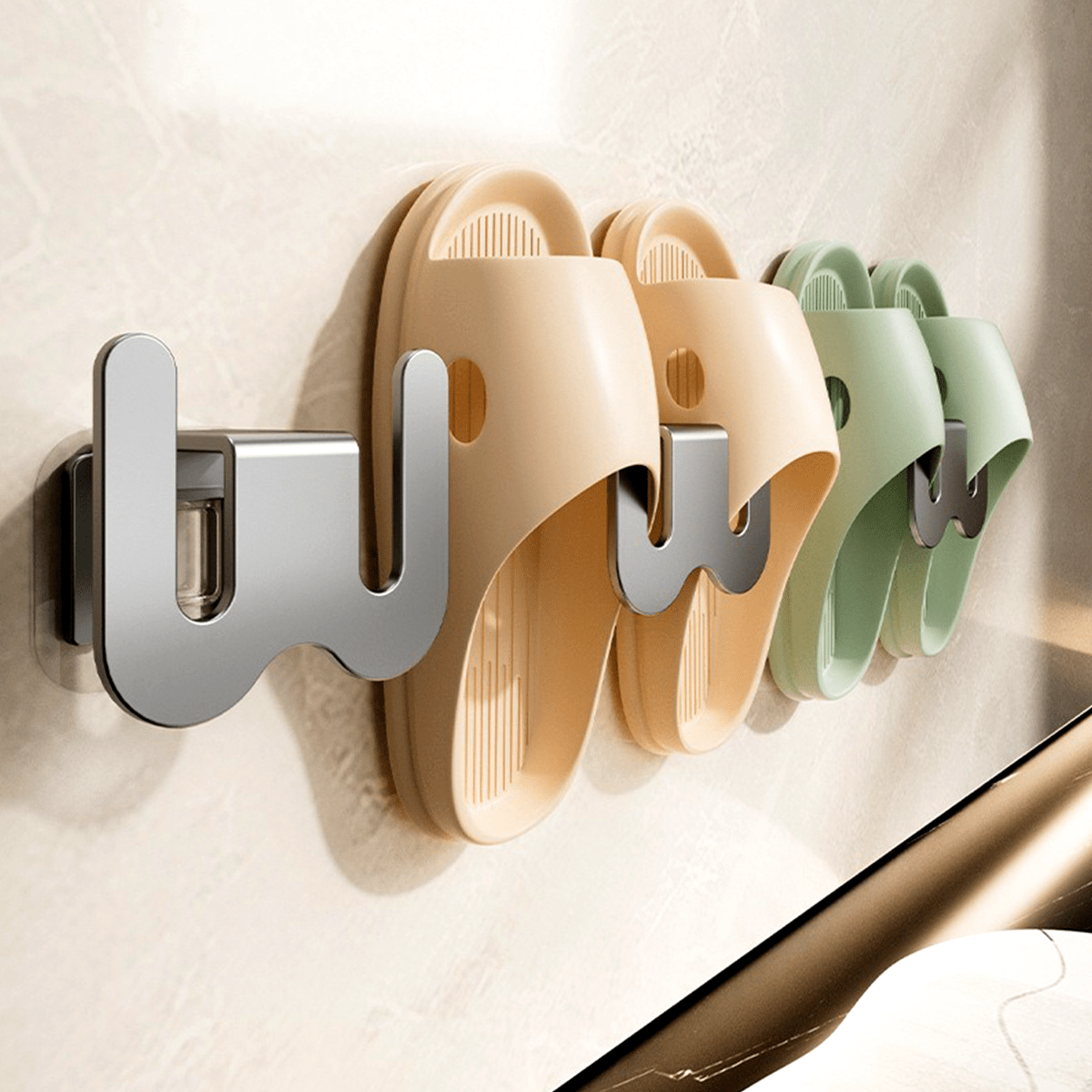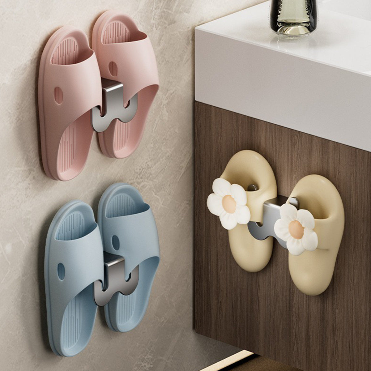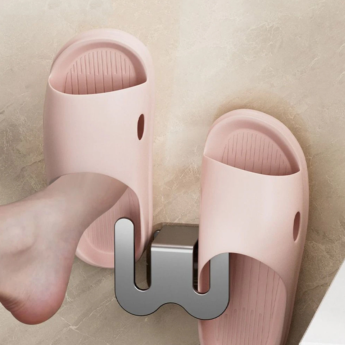 Держатель для тапочек для ванной с настенной полкой для обуви и металлическим подвесным органайзером - Установка без сверления, крючок для слива воды для хранения - Идеально подходит для использования в ванной, индивидуальная упаковка