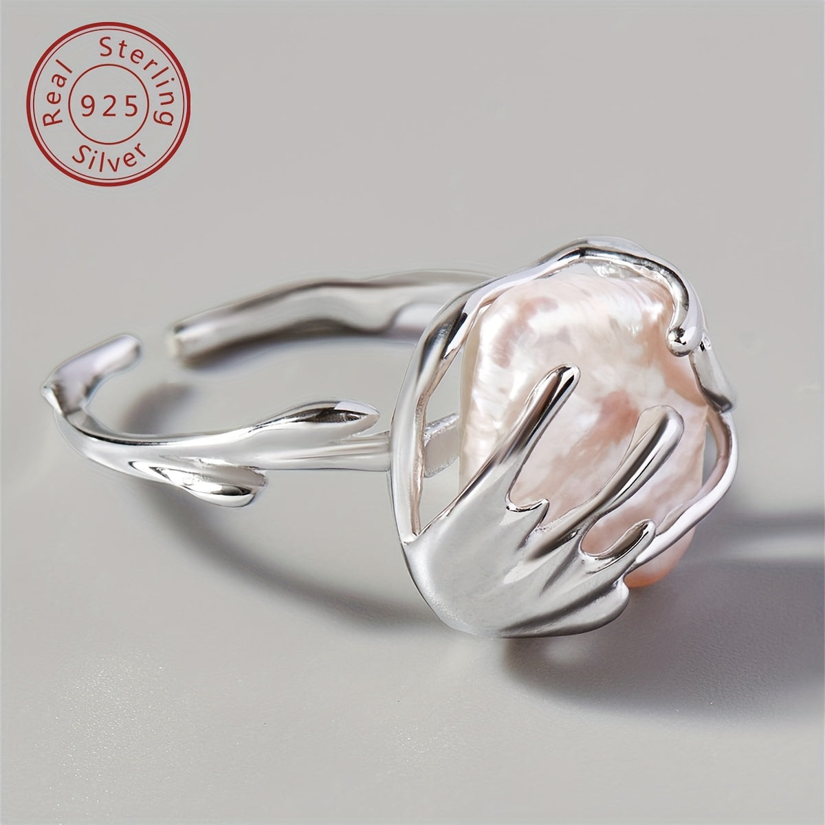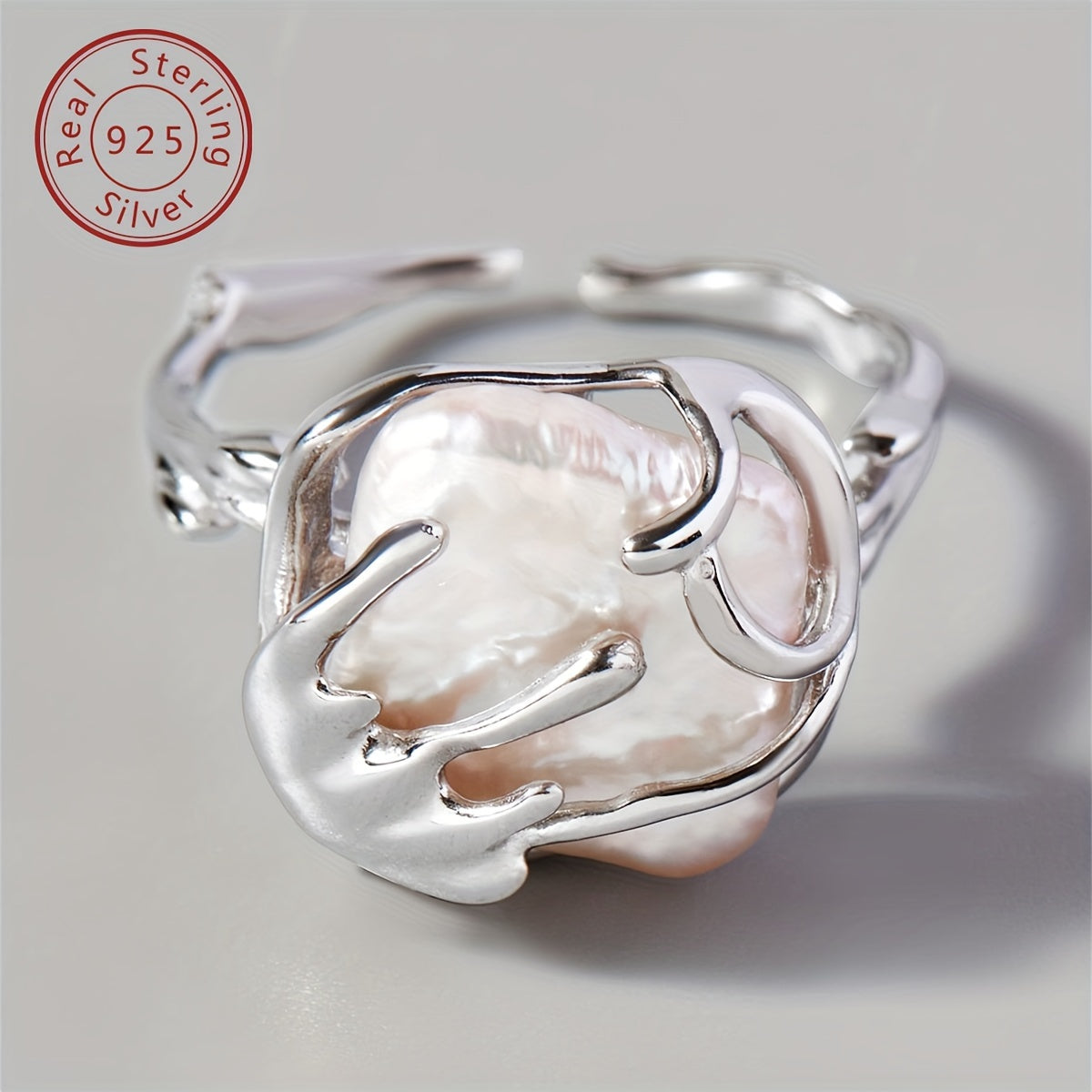 Кольцо из стерлингового серебра с пресноводным жемчугом и текстурой раттана для женщин