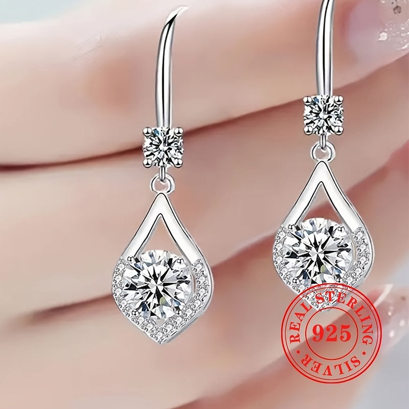 Красивые невестинские свадебные серьги-капли из 925-й стерлинговой серебра, сверкающие серьги с цирконием для женщин, идеально подходящие для вечеринок и особых мероприятий.