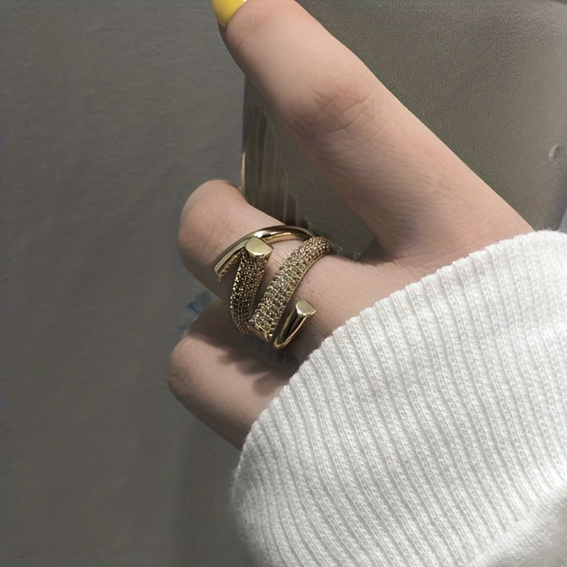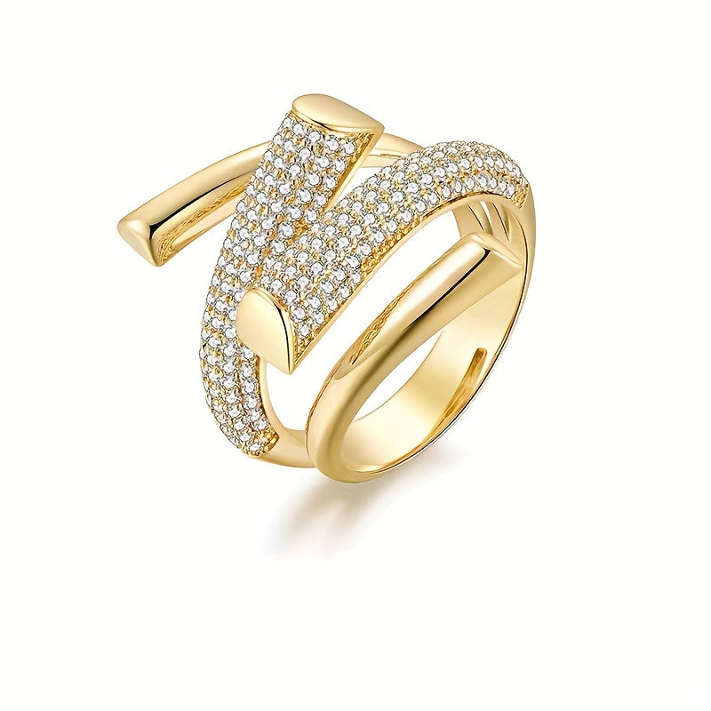 Красивое кольцо-обертка с блестящими циркониями в дизайне, вдохновленном ногтями, идеально подходит для повседневной носки или для гламурного вечернего образа, идеально для женщин.