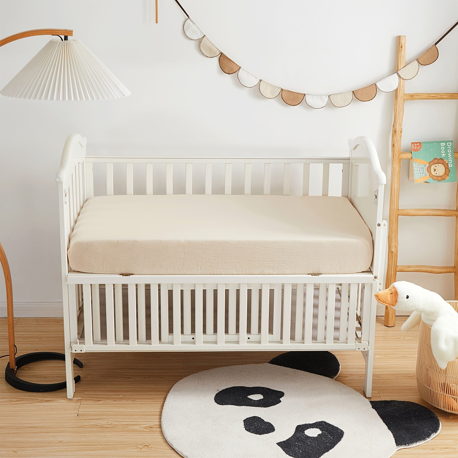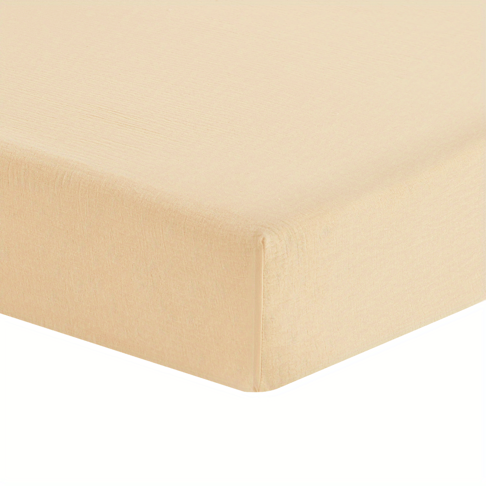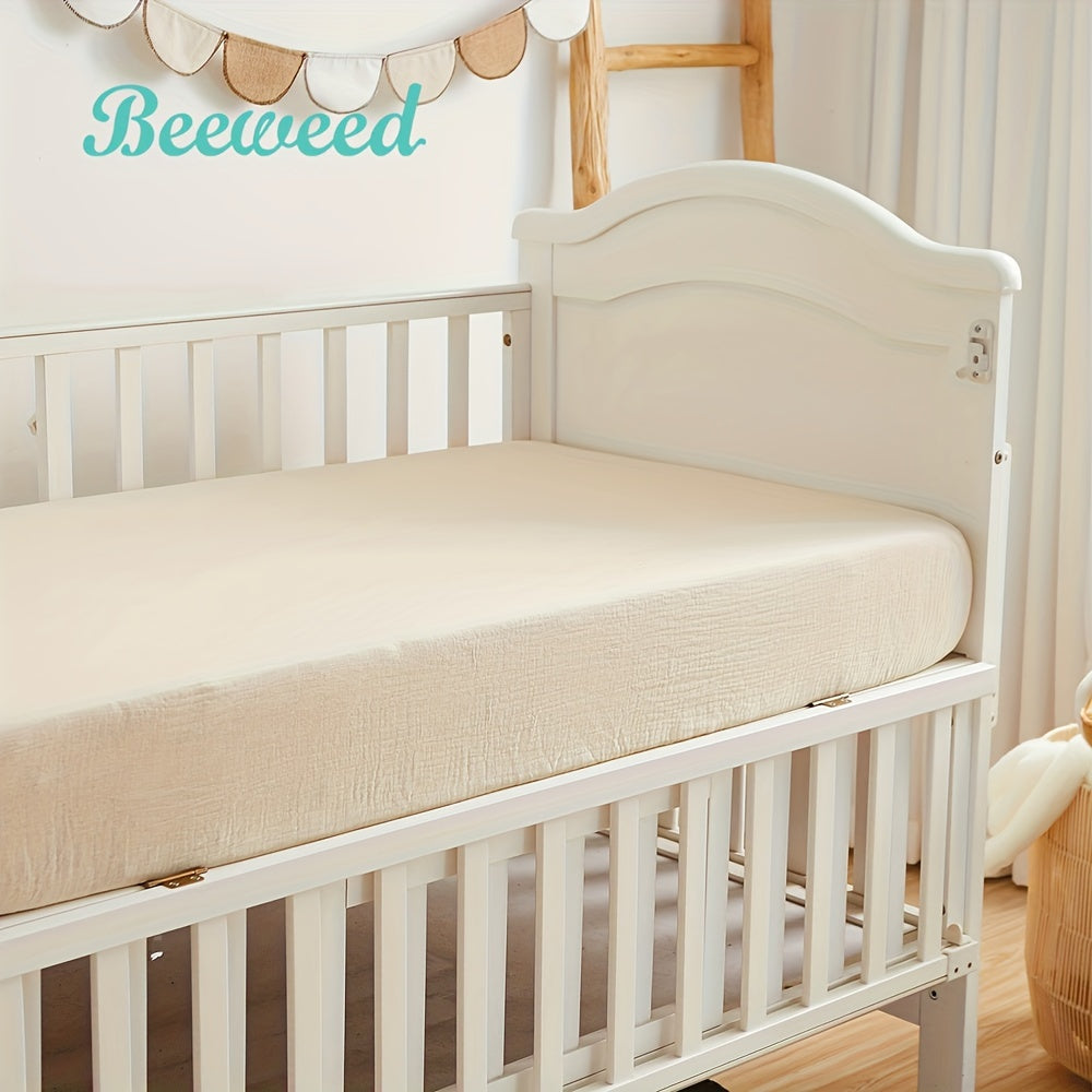 BeeWeed Мягкая муслиновая простыня для младенцев и детей - однотонный бежевый цвет, глубокий карман, стеганое постельное белье, машинная стирка, 28" x 52" x 8", бежевый