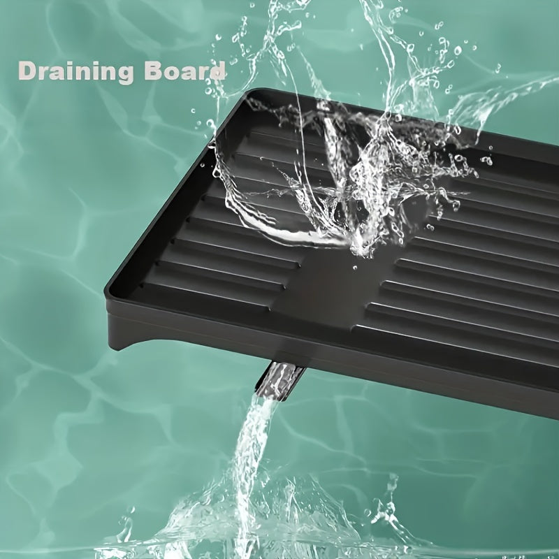 Черная двухъярусная сушилка для посуды над раковиной с крылом для сушки, съемным держателем для столовых приборов, подставкой для чашек и органайзером для столовых приборов - набор кухонных принадлежностей из металла и пластика, не требует электропитания