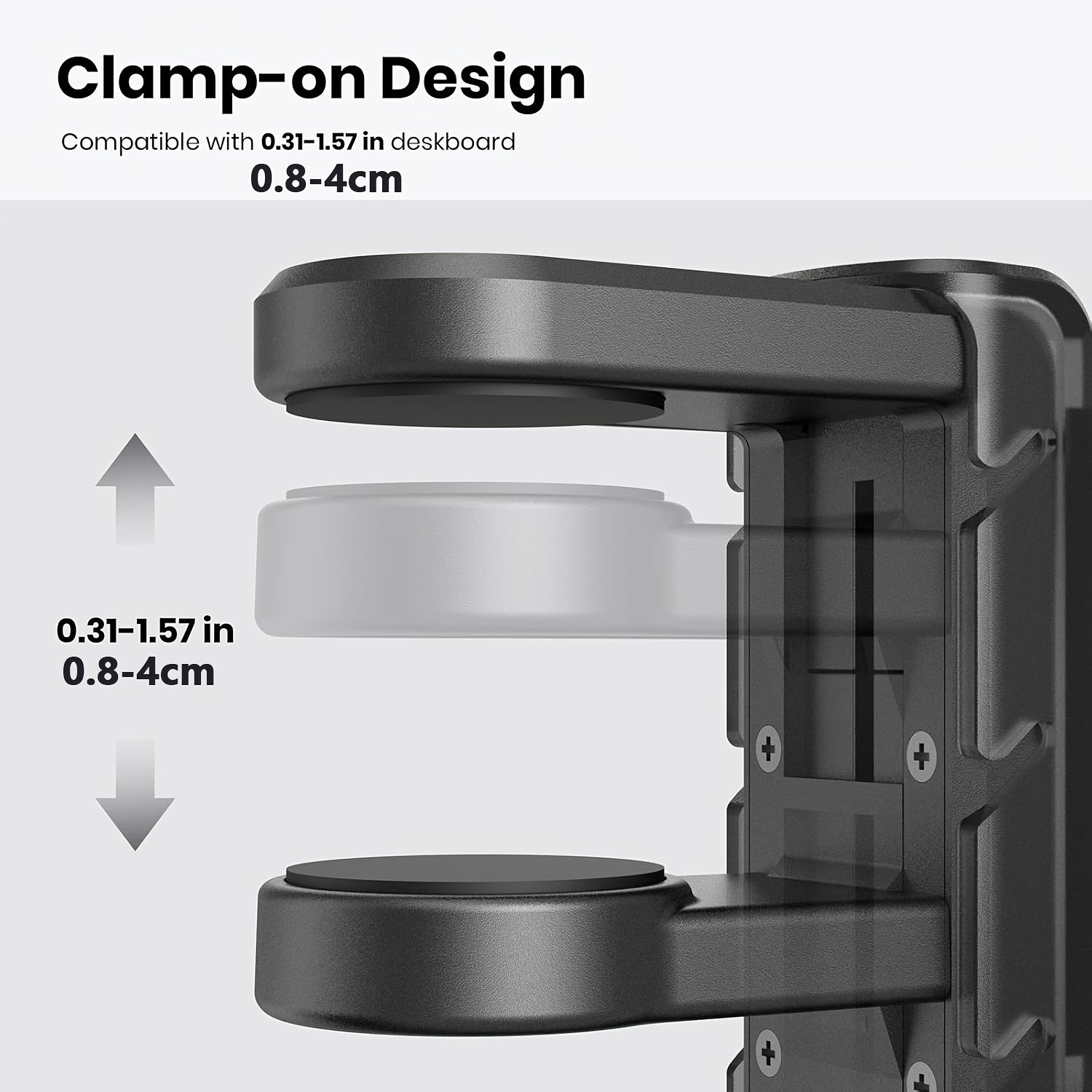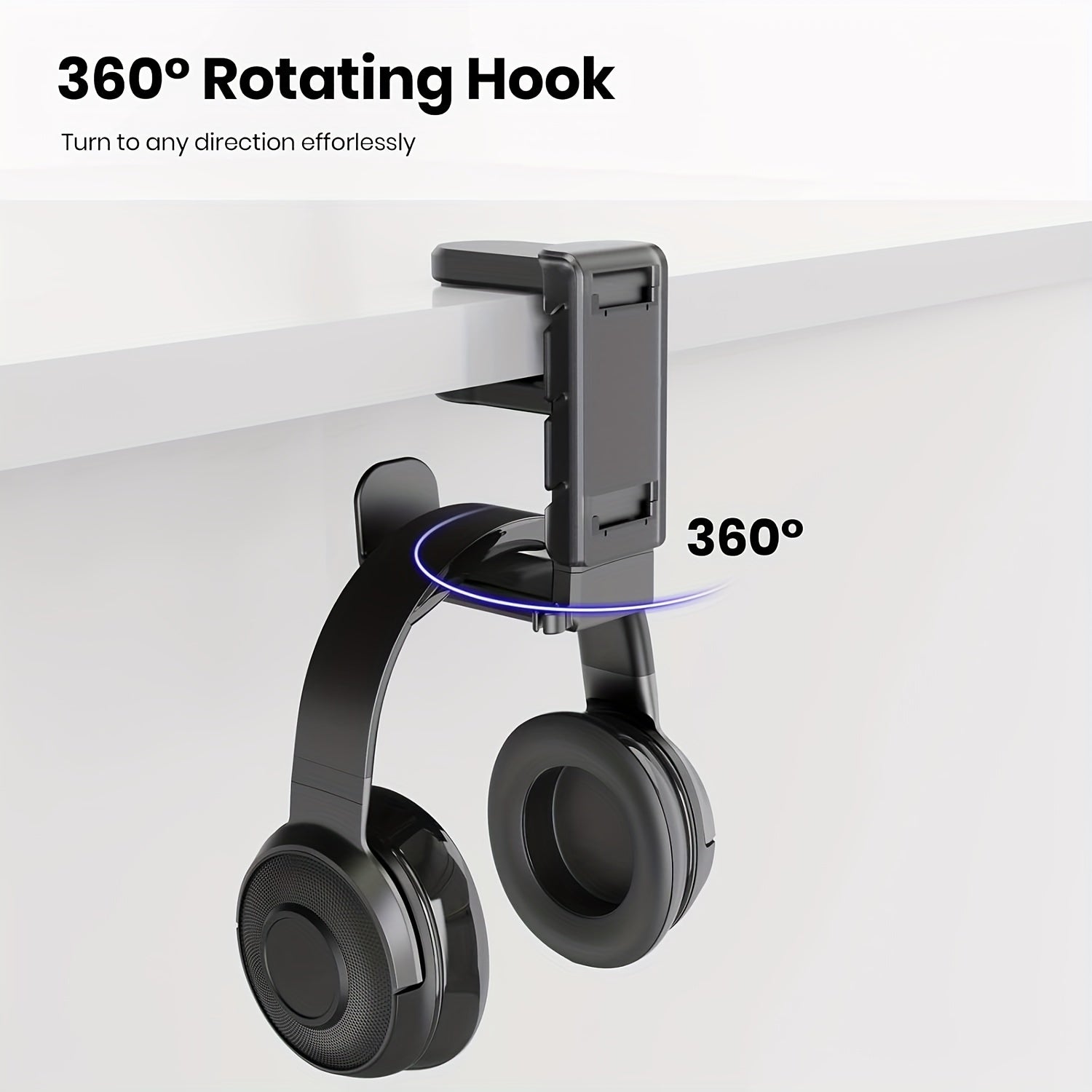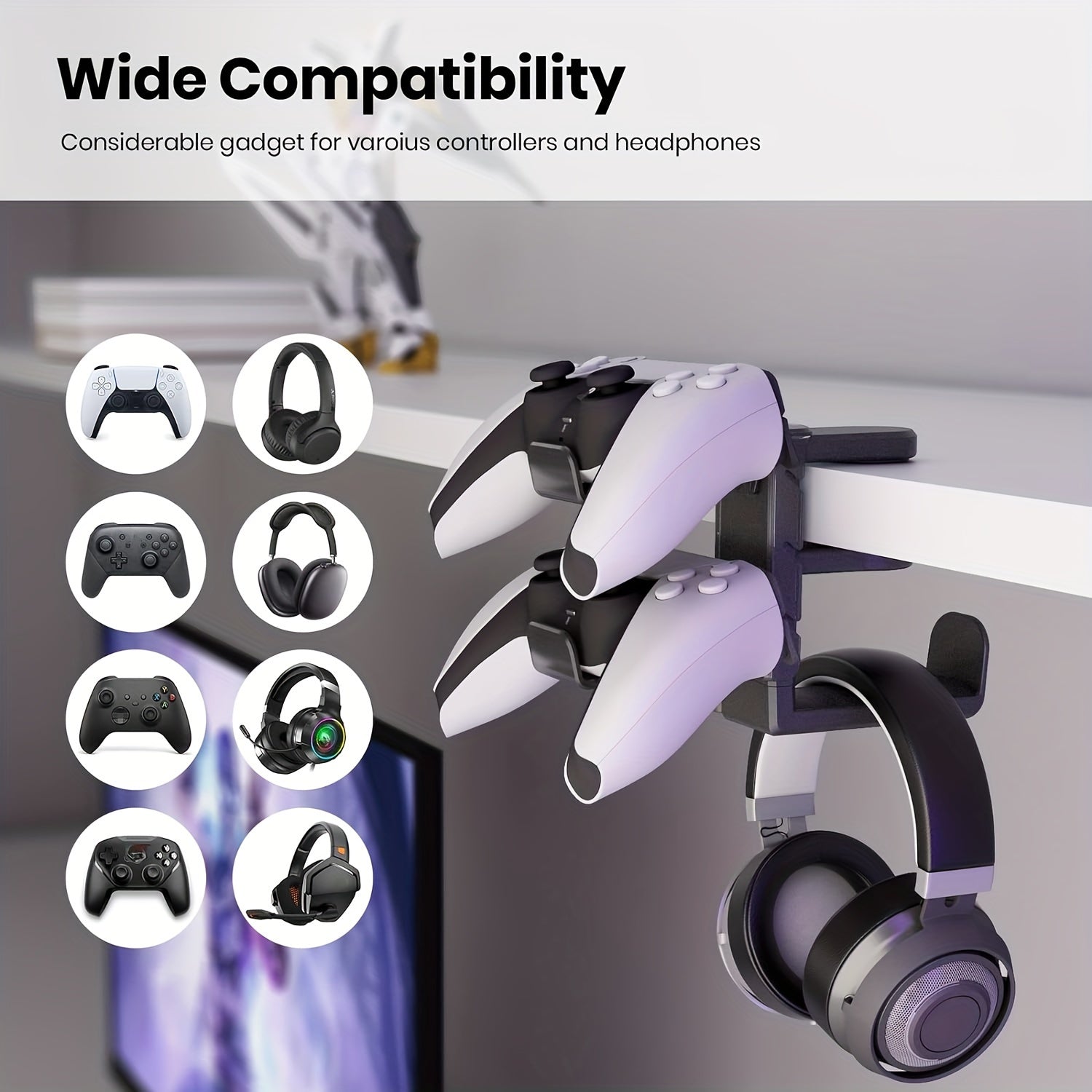 Черный 3-в-1 регулируемый держатель игровой гарнитуры и контроллера с вращающимся зажимом для PS5/Switch/Xbox. Имеет подставку под стол и крючок для кабельного органайзера.