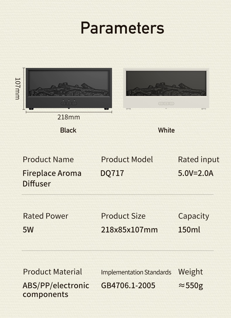 Черно-белый настольный увлажнитель с вариантами цвета пламени и ароматерапией