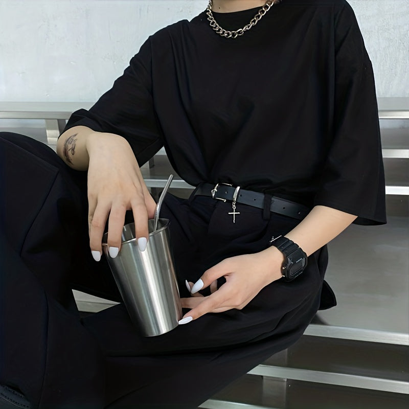 Черный готический металлический крест пряжка ремень из искусственной кожи для мужчин и женщин повседневные черные штаны
