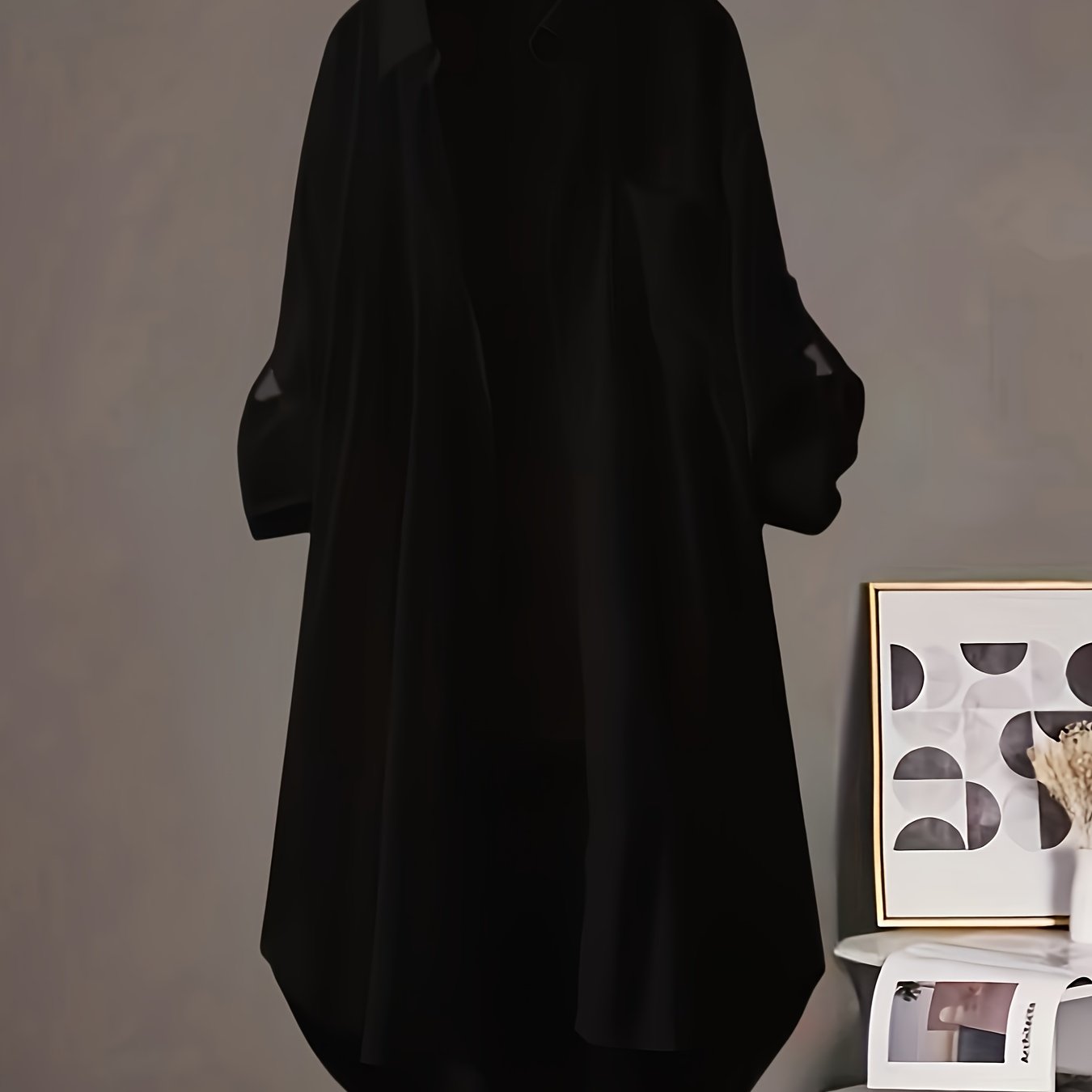 Блузка миди большого размера черная с длинным рукавом, легкий полиэстер спандекс для весны и лета