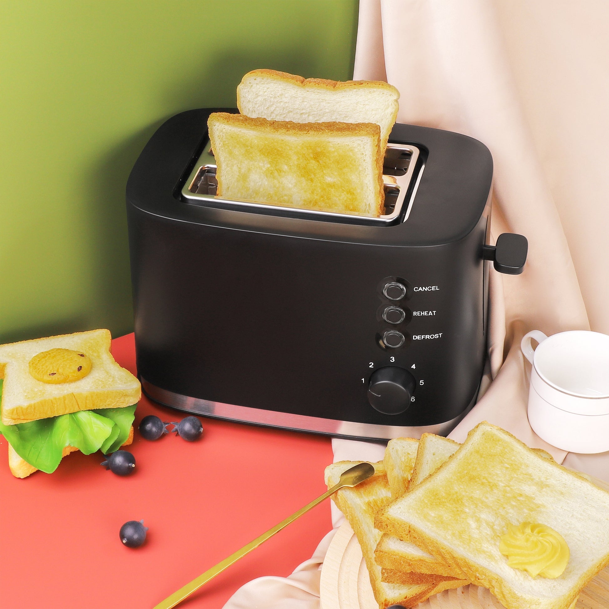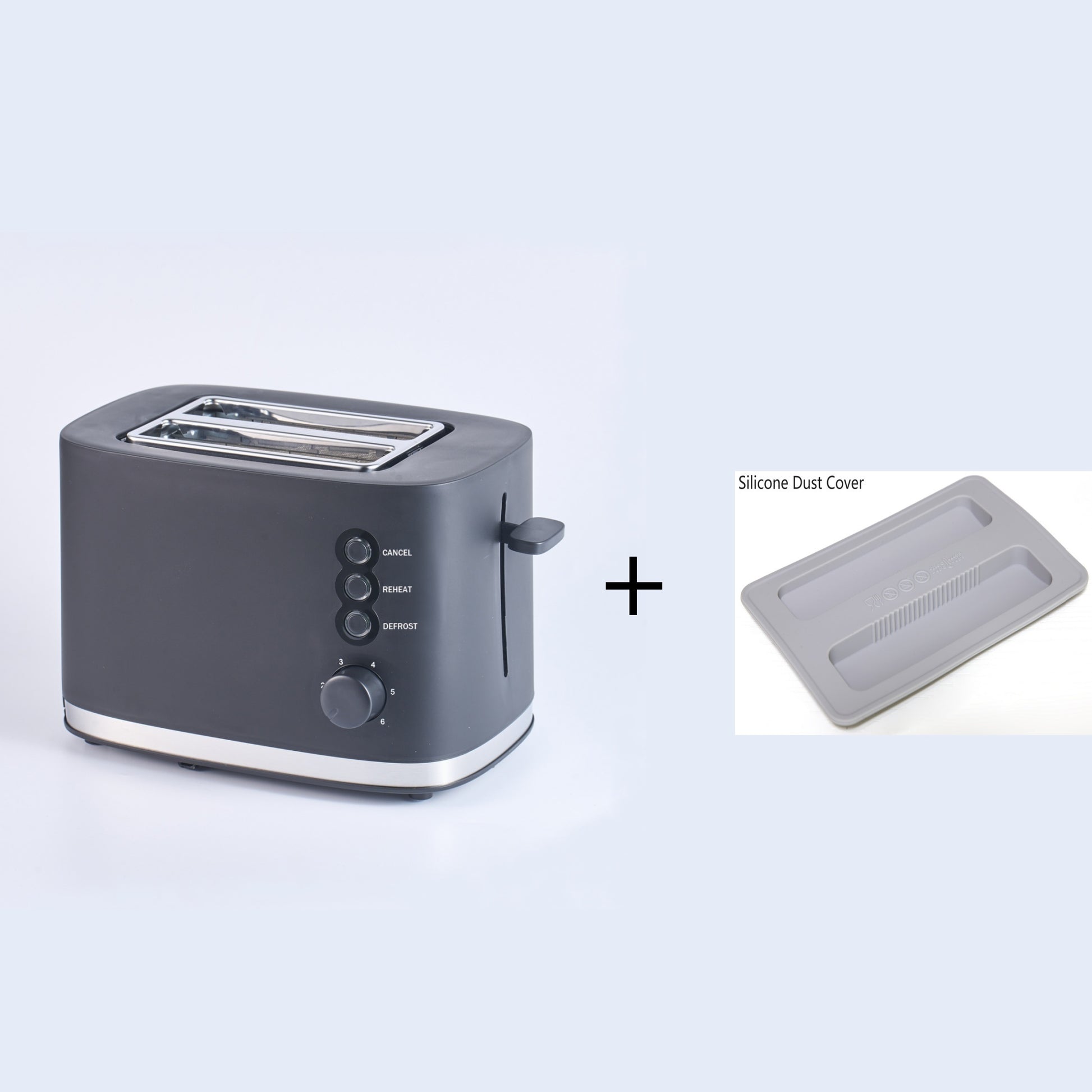 Черный пластиковый тостер с широкими слотами и множеством функций