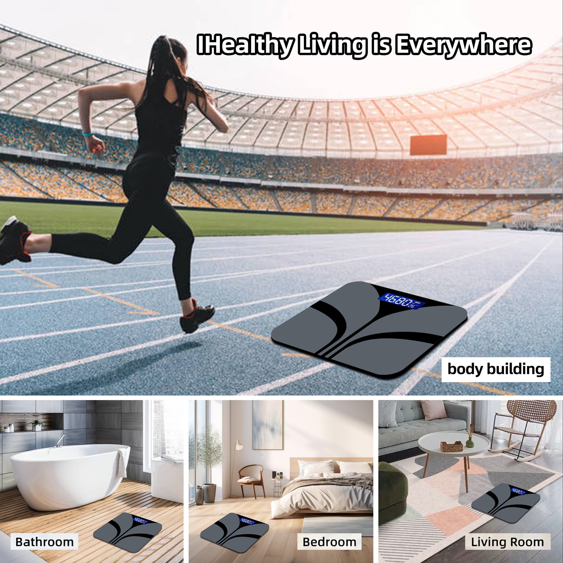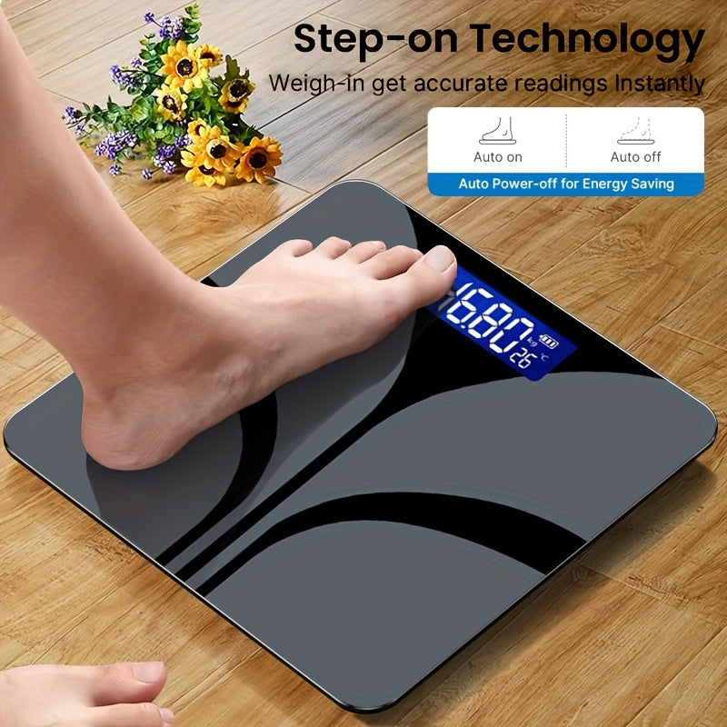 Черные умные весы с ЖК-дисплеем и измерением температуры для использования в ванной