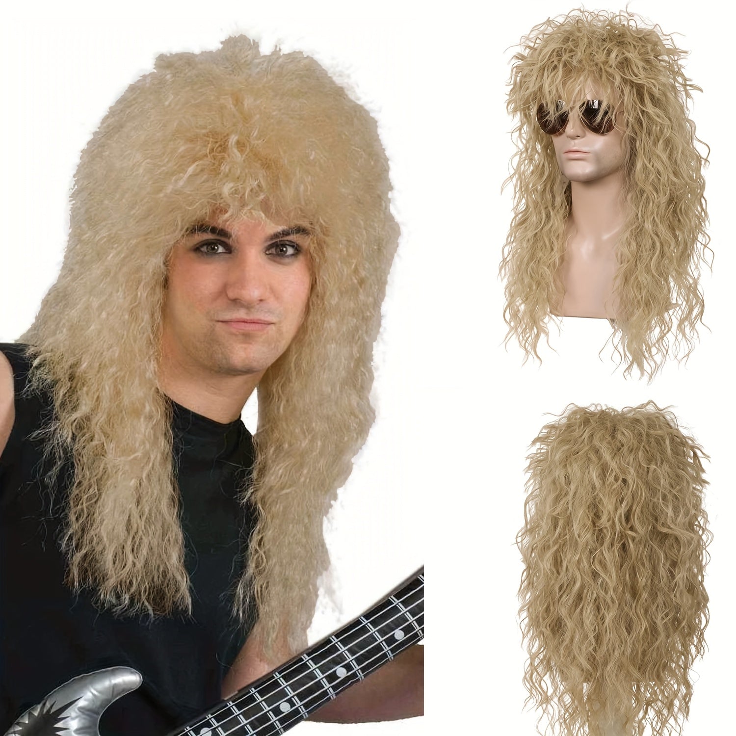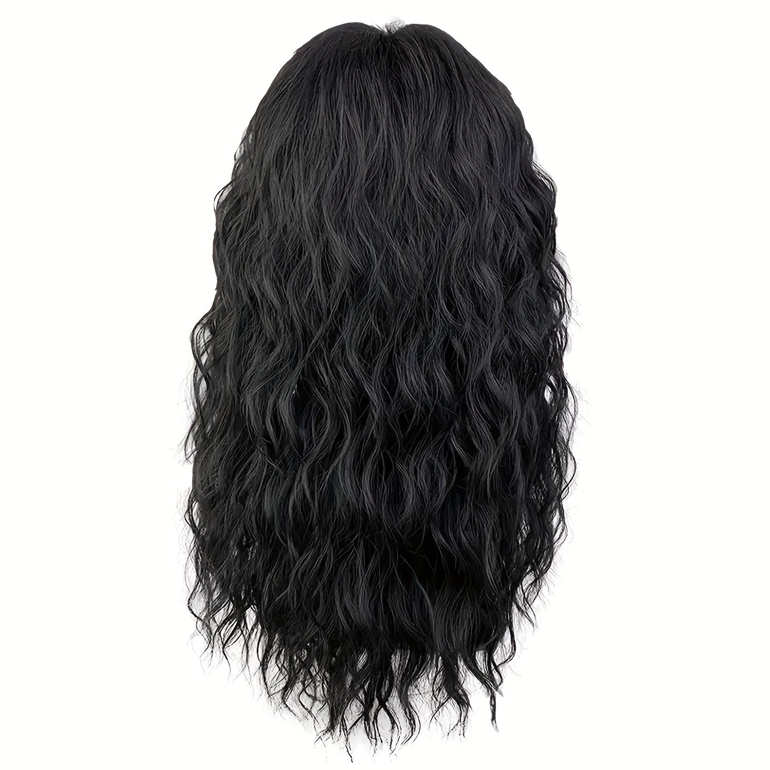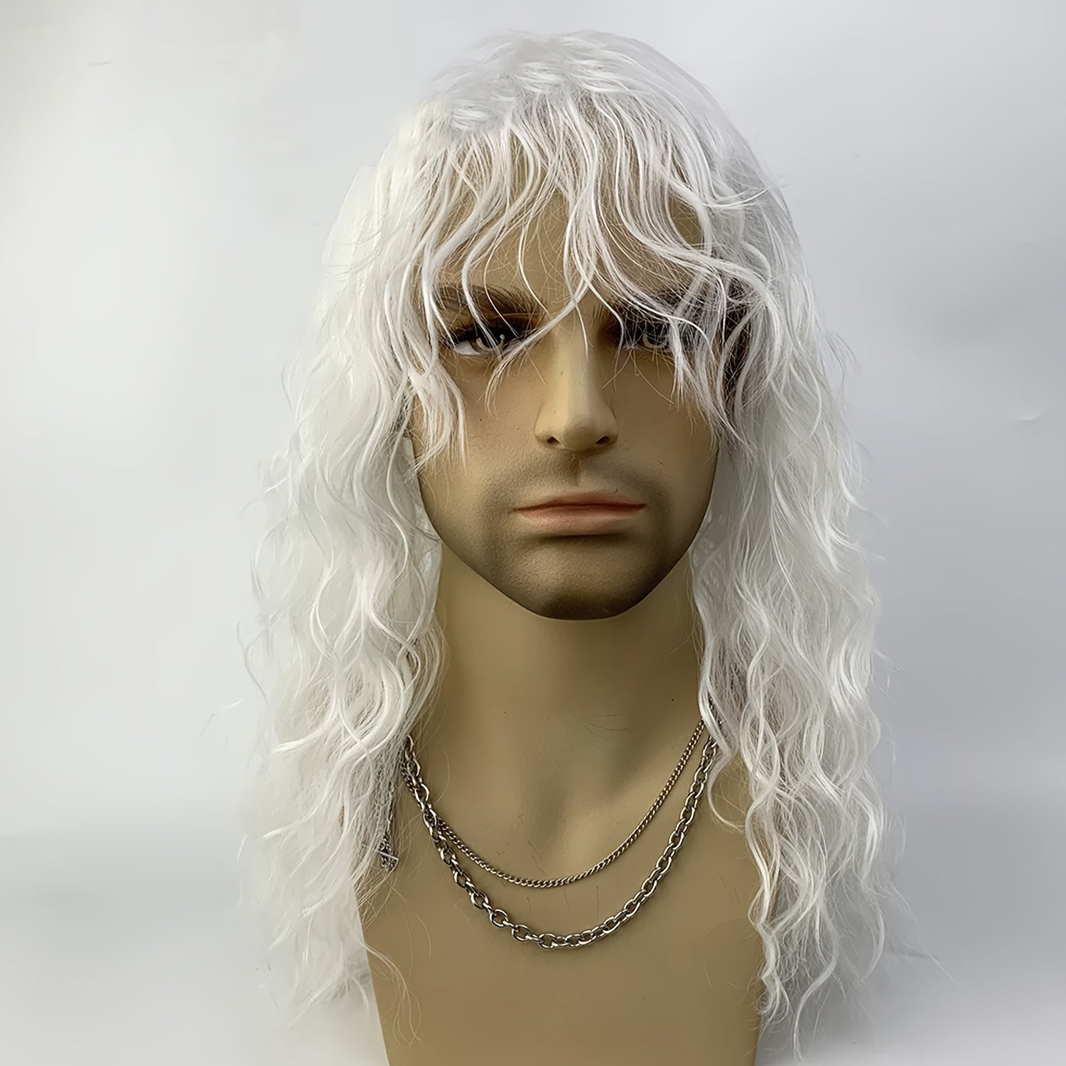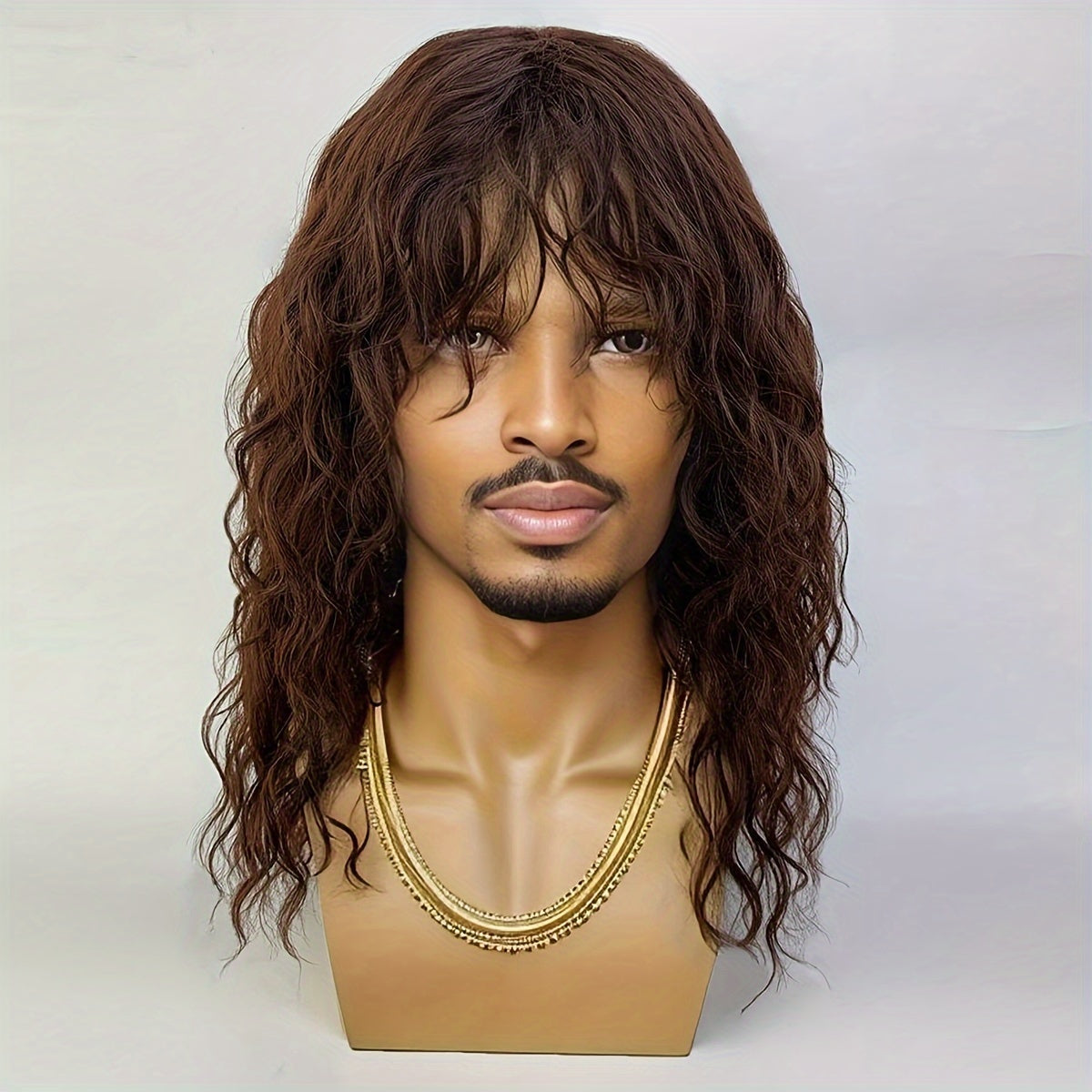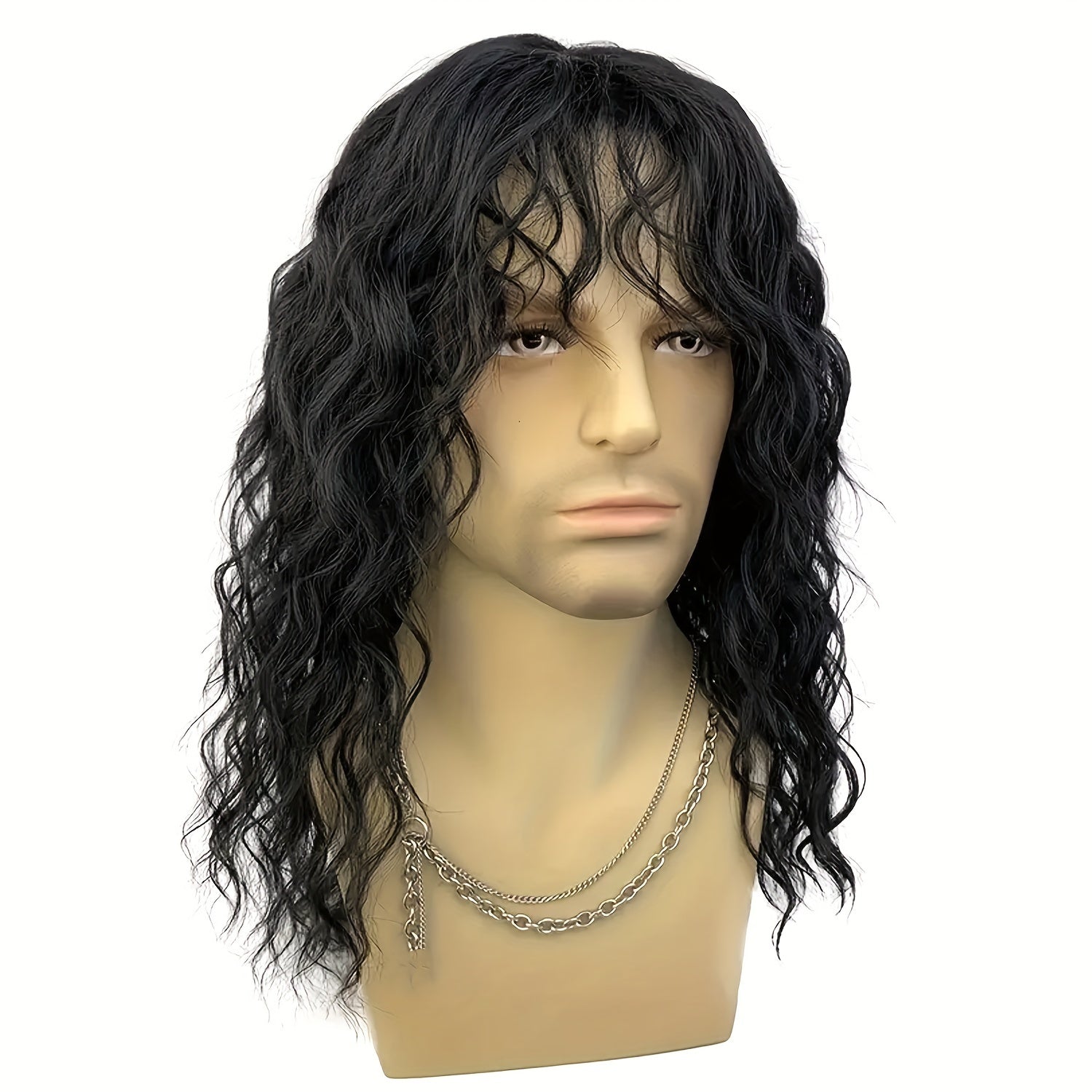 Черная синтетическая волнистая панк-парик для мужчин, 18 дюймов в длину с челкой, безклеевая прическа для Хэллоуина или вечеринки