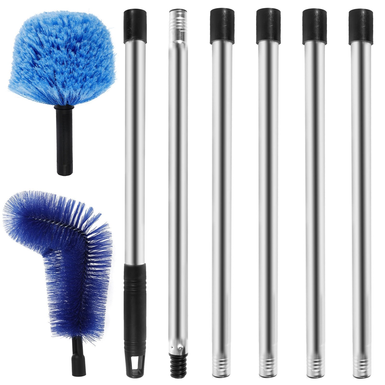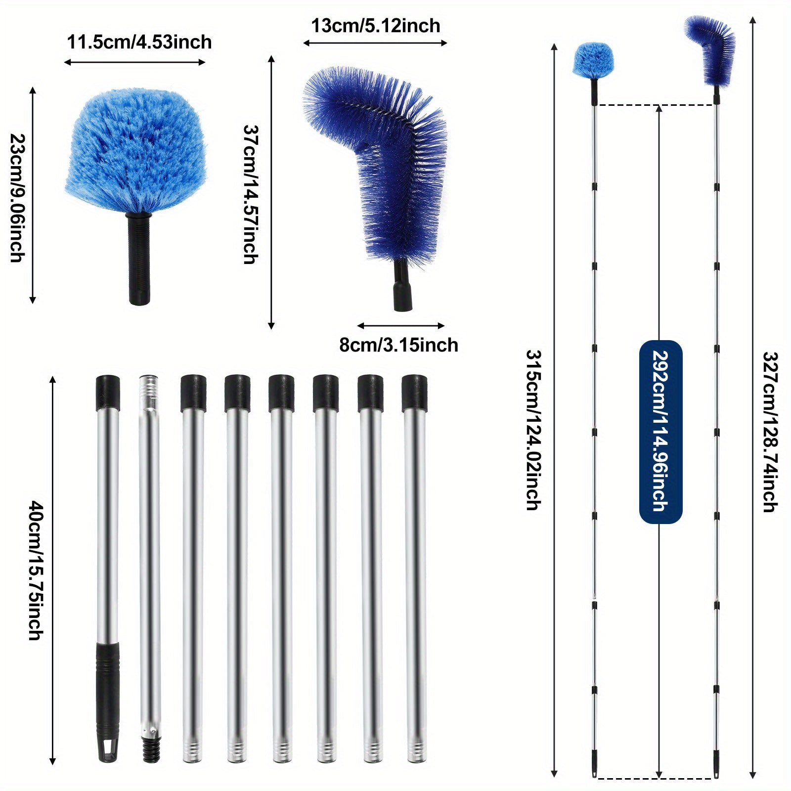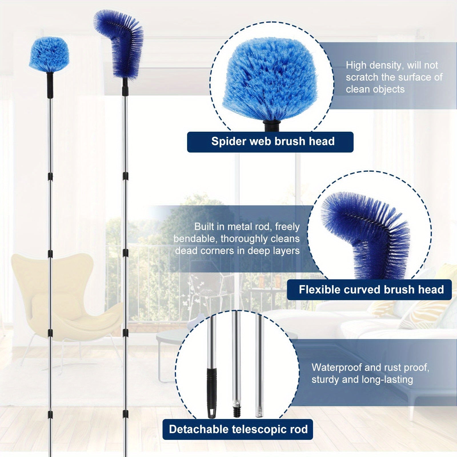 Синий набор для чистки паутины с выдвижной нержавеющей стальной штангой, щетка для паутины, средней жесткости, не требует электричества, многофункциональный инструмент для уборки дома для потолочных вентиляторов и мебели.
