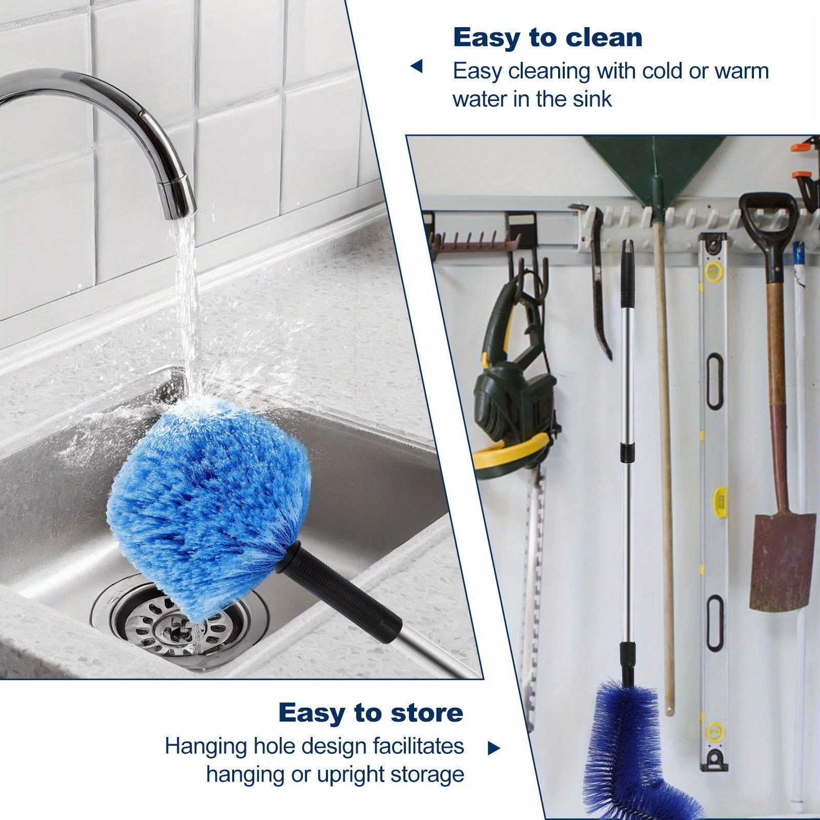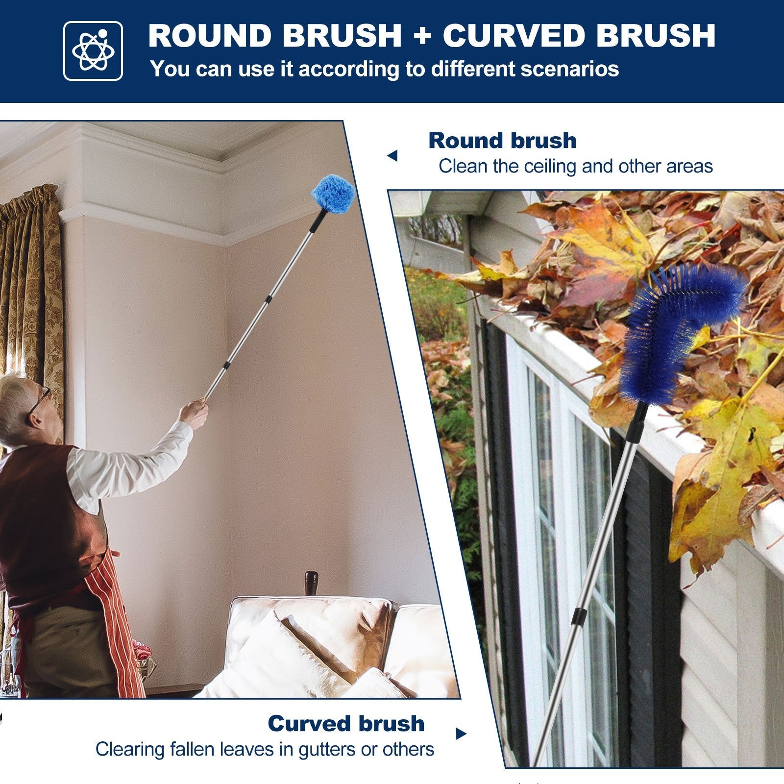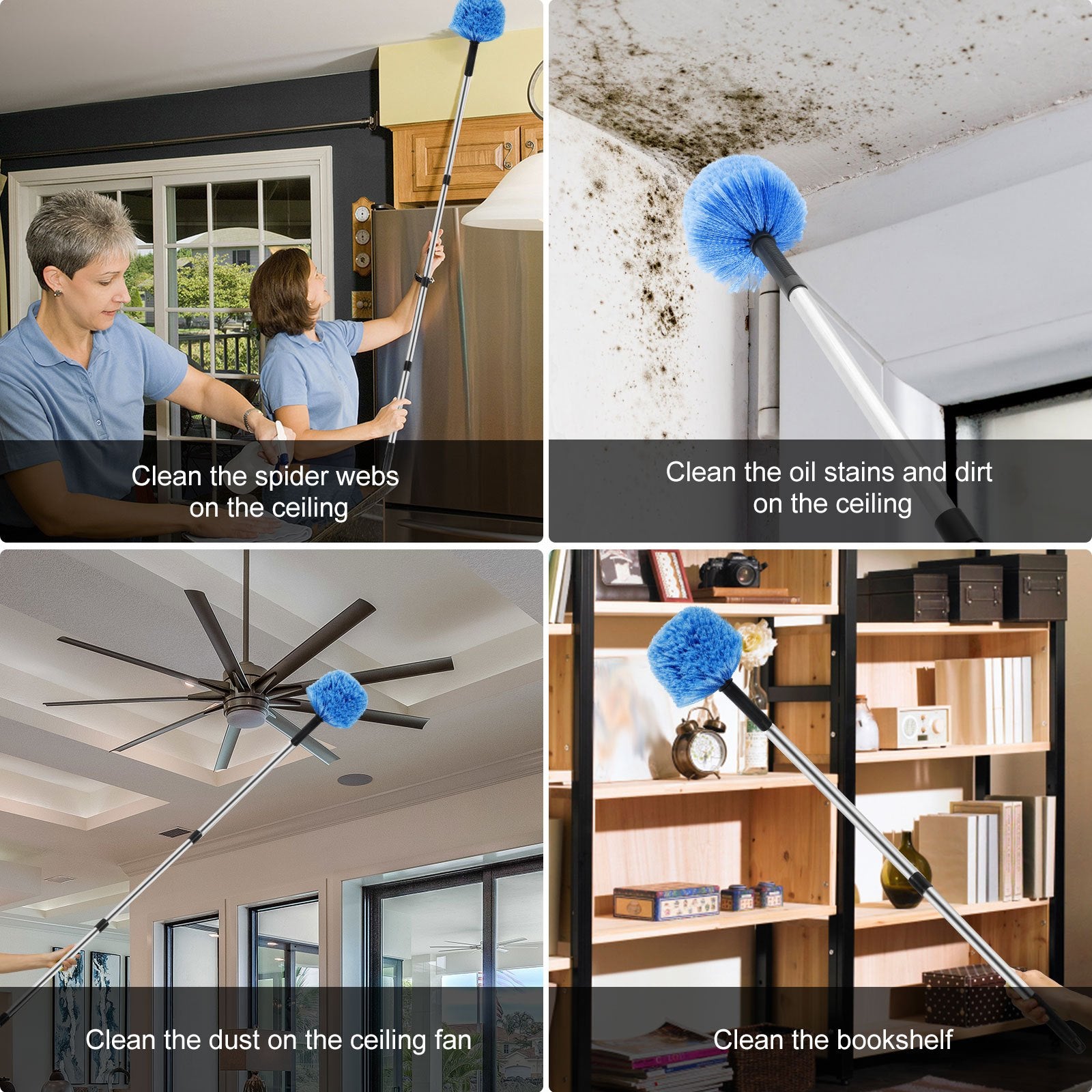 Синий набор для чистки паутины с выдвижной нержавеющей стальной штангой, щетка для паутины, средней жесткости, не требует электричества, многофункциональный инструмент для уборки дома для потолочных вентиляторов и мебели.