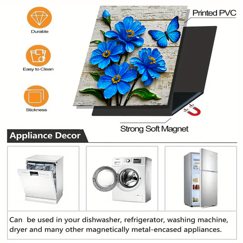 Голубая цветочная наклейка-стикер из водонепроницаемого винила с изображением бабочки для кухонных приборов