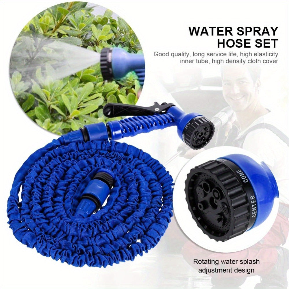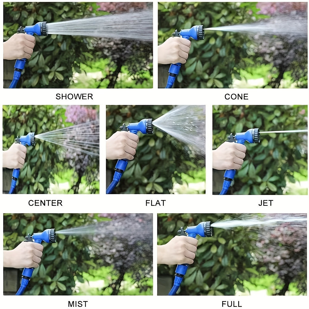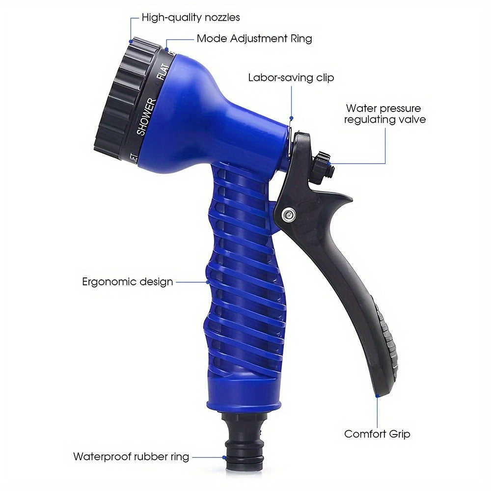 Голубой садовый шланг с регулируемым распылителем, прочный и гибкий для полива растений, мойки автомобиля, ухода за газоном, уборки дома