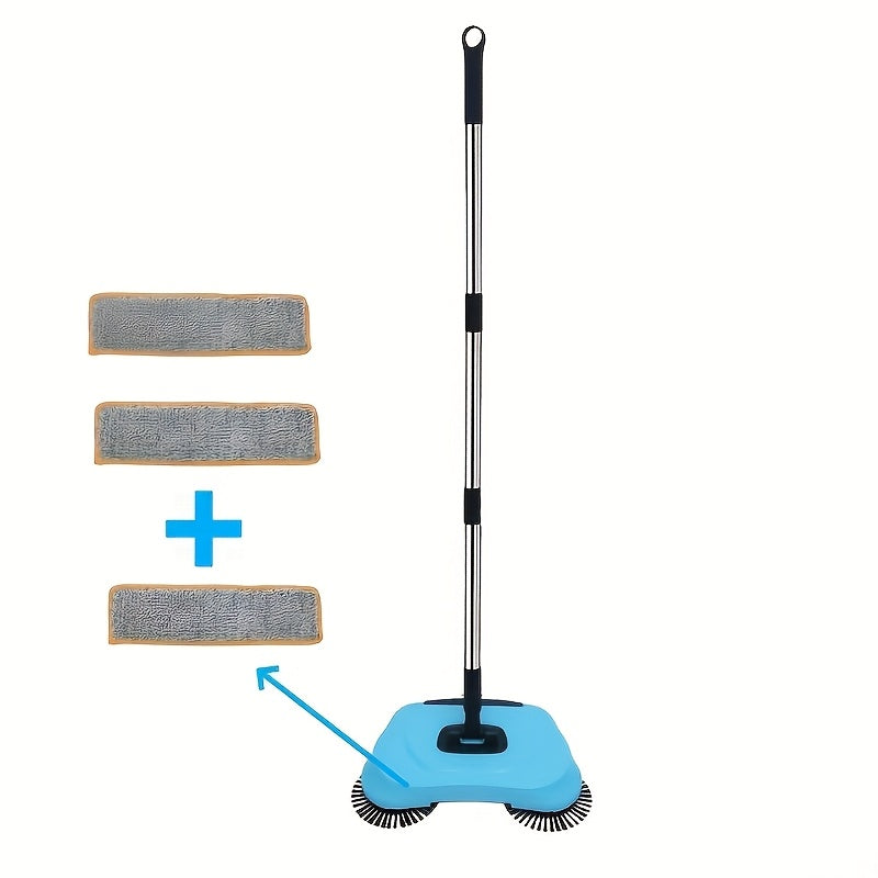 Синий/Красный 3-в-1 Ручной Щетка-Подметатель Моп Пылесос Комбо - Многофункциональный Инструмент для Уборки Полов для Деревянных и Плиточных Полов, Сухое и Влажное Использование, Удаляет Пух и Пыль, Идеально Подходит для Гостиной, Спальни, Кухни и Туалета