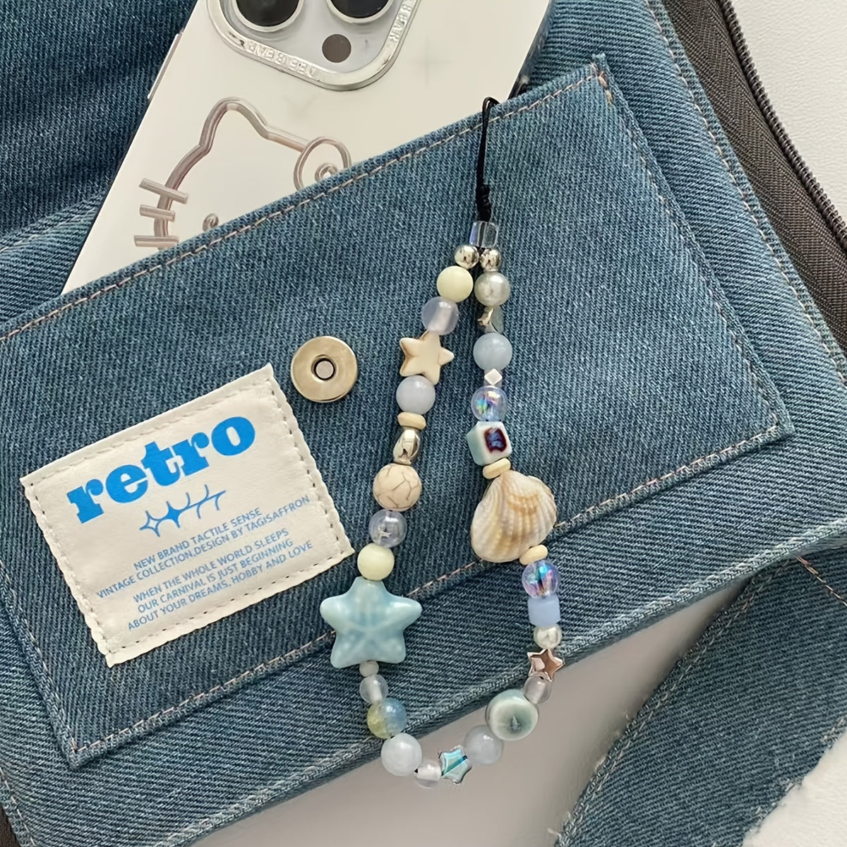 Синий звездный ракушка-брелок для телефона для женщин и девочек, подходит для сумок и чехлов для телефонов