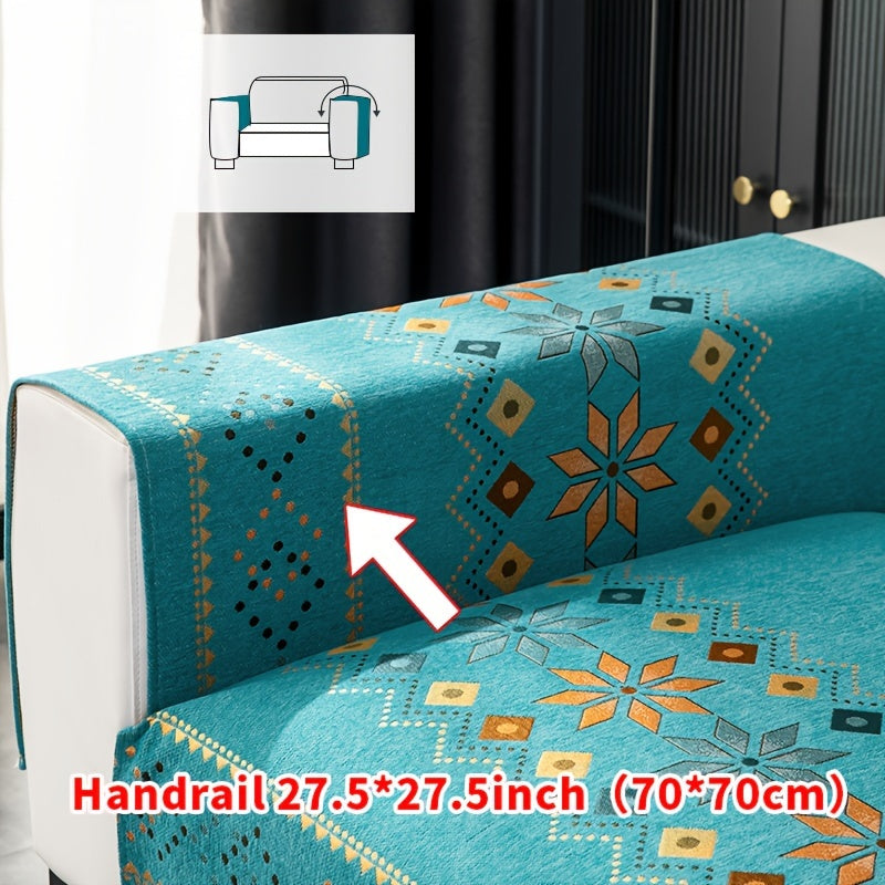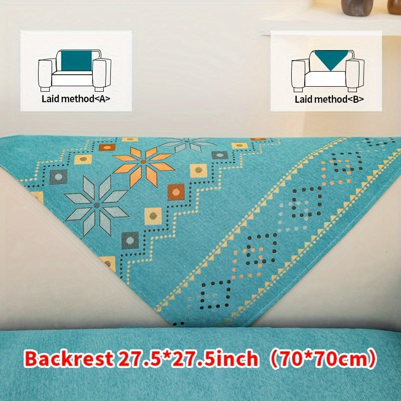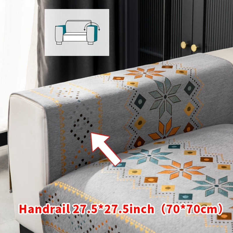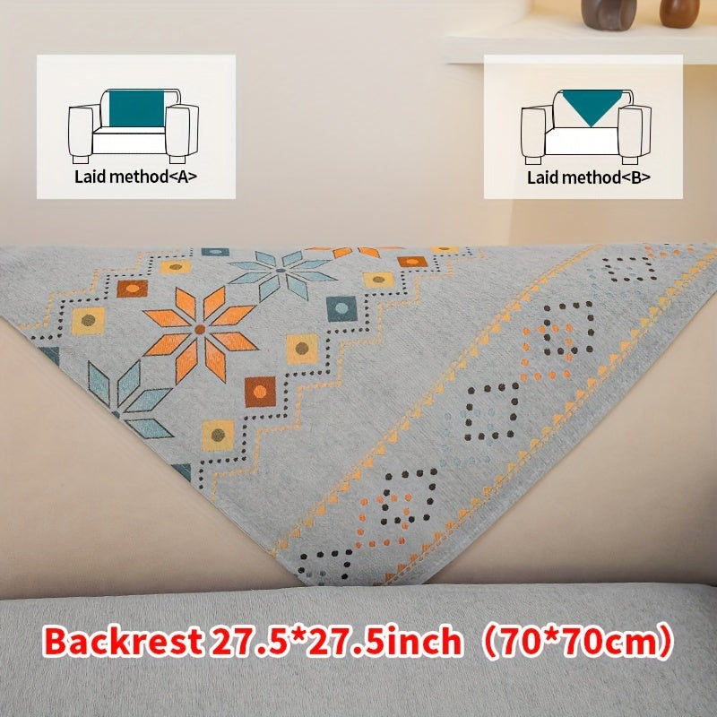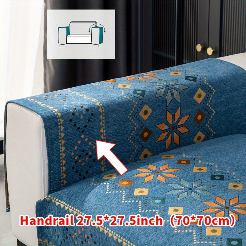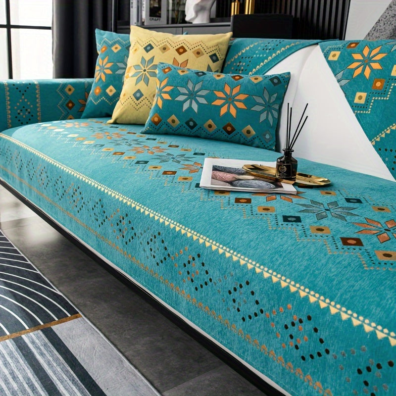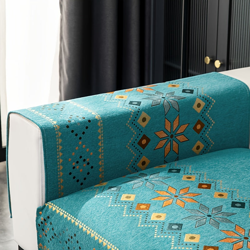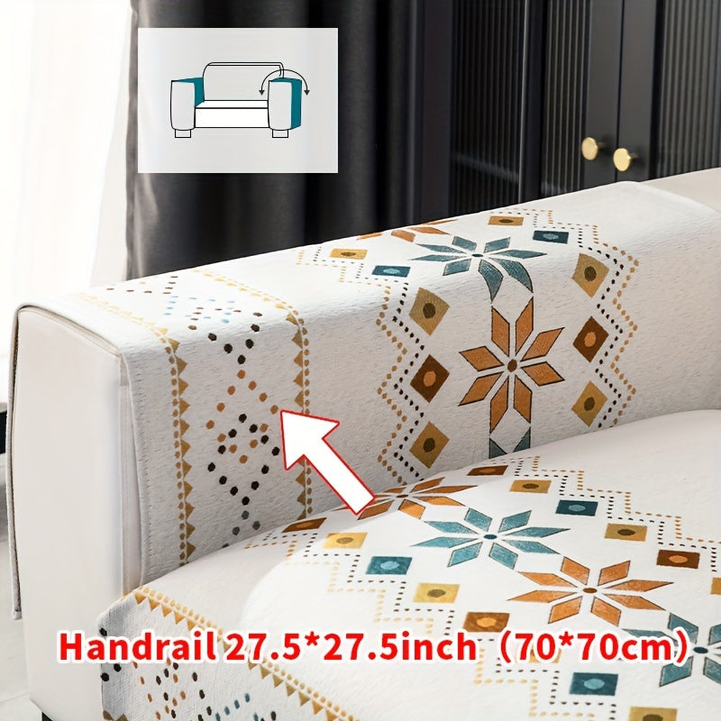 Чехол для дивана из шенилла "Богемные четыре сезона" с геометрическим вышитым узором, обеспечивает защиту дивана и противоскользящие свойства для домашнего декора в спальне, офисе и гостиной.