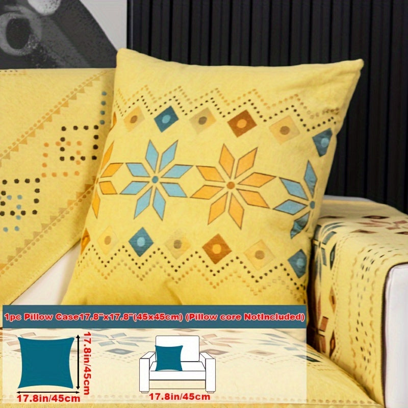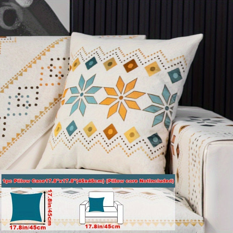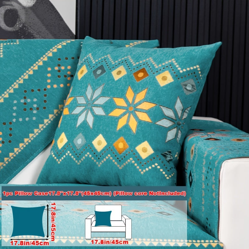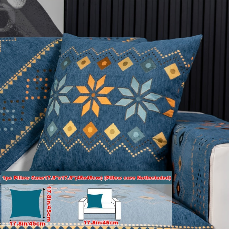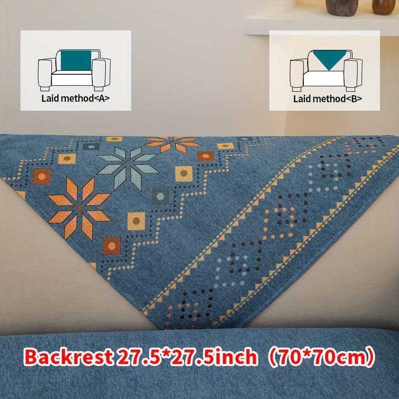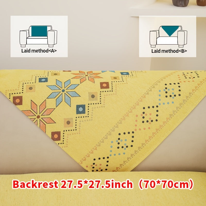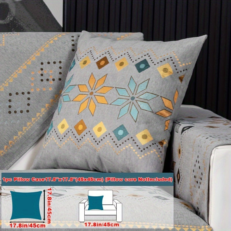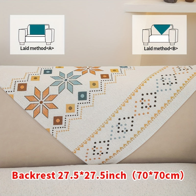 Чехол для дивана из шенилла "Богемные четыре сезона" с геометрическим вышитым узором, обеспечивает защиту дивана и противоскользящие свойства для домашнего декора в спальне, офисе и гостиной.