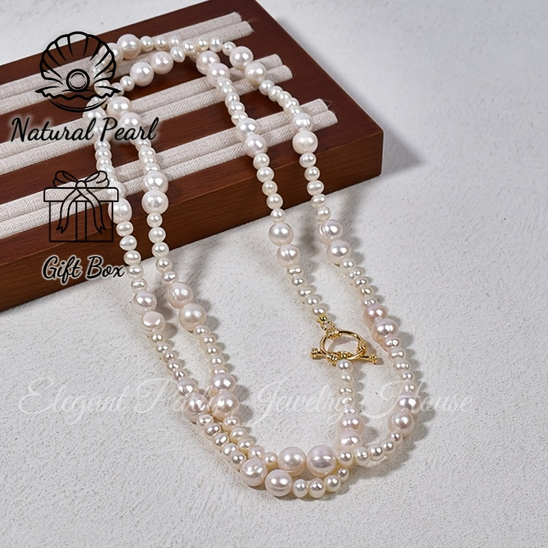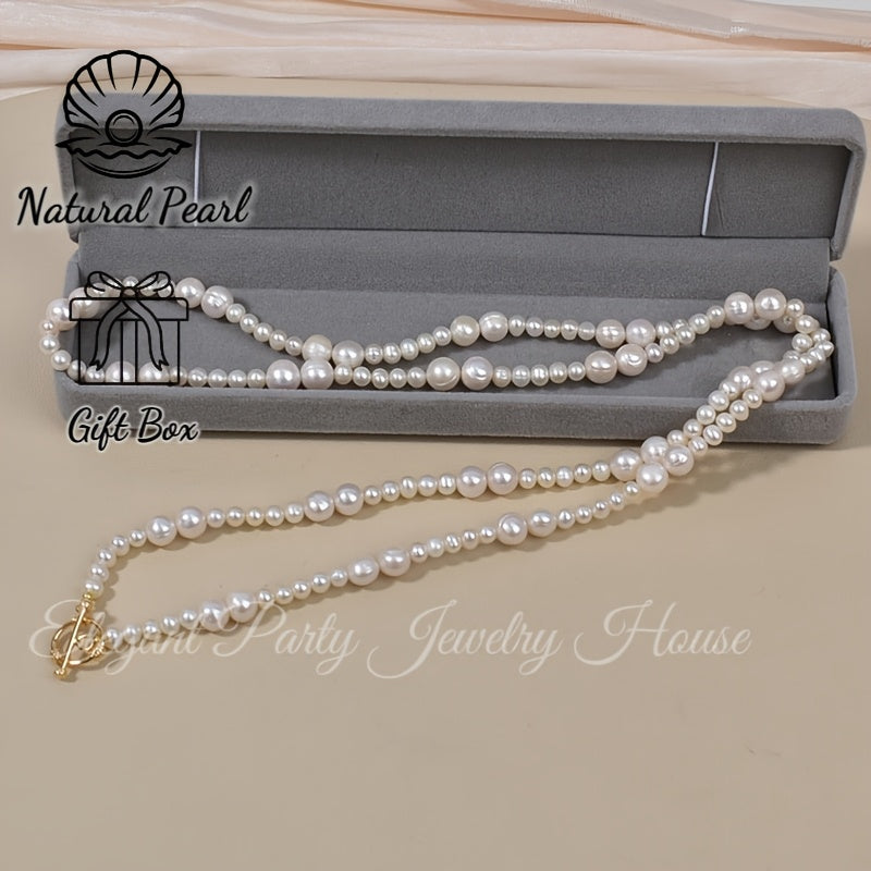 Бохемское ожерелье из пресноводных жемчужин с застежкой OT - Элегантное и универсальное для любого случая, поставляется в подарочной коробке