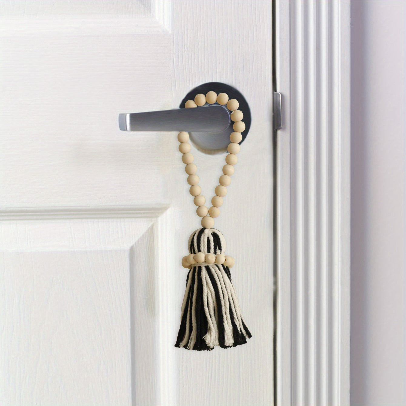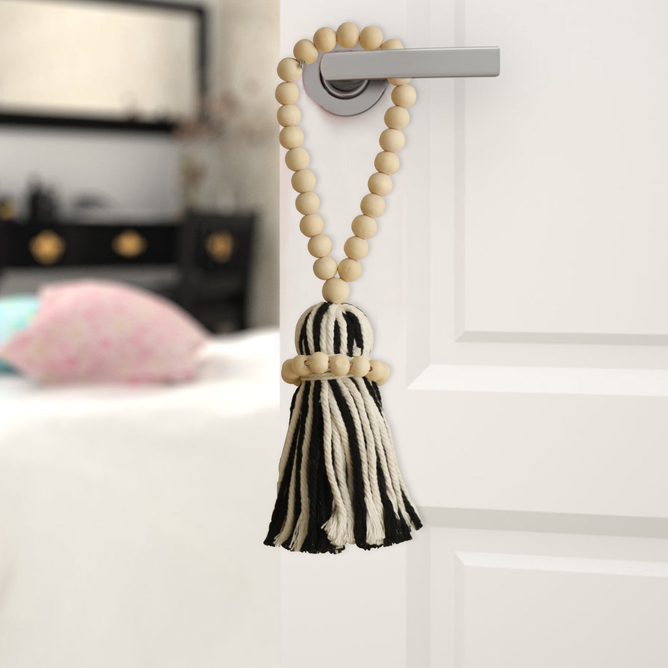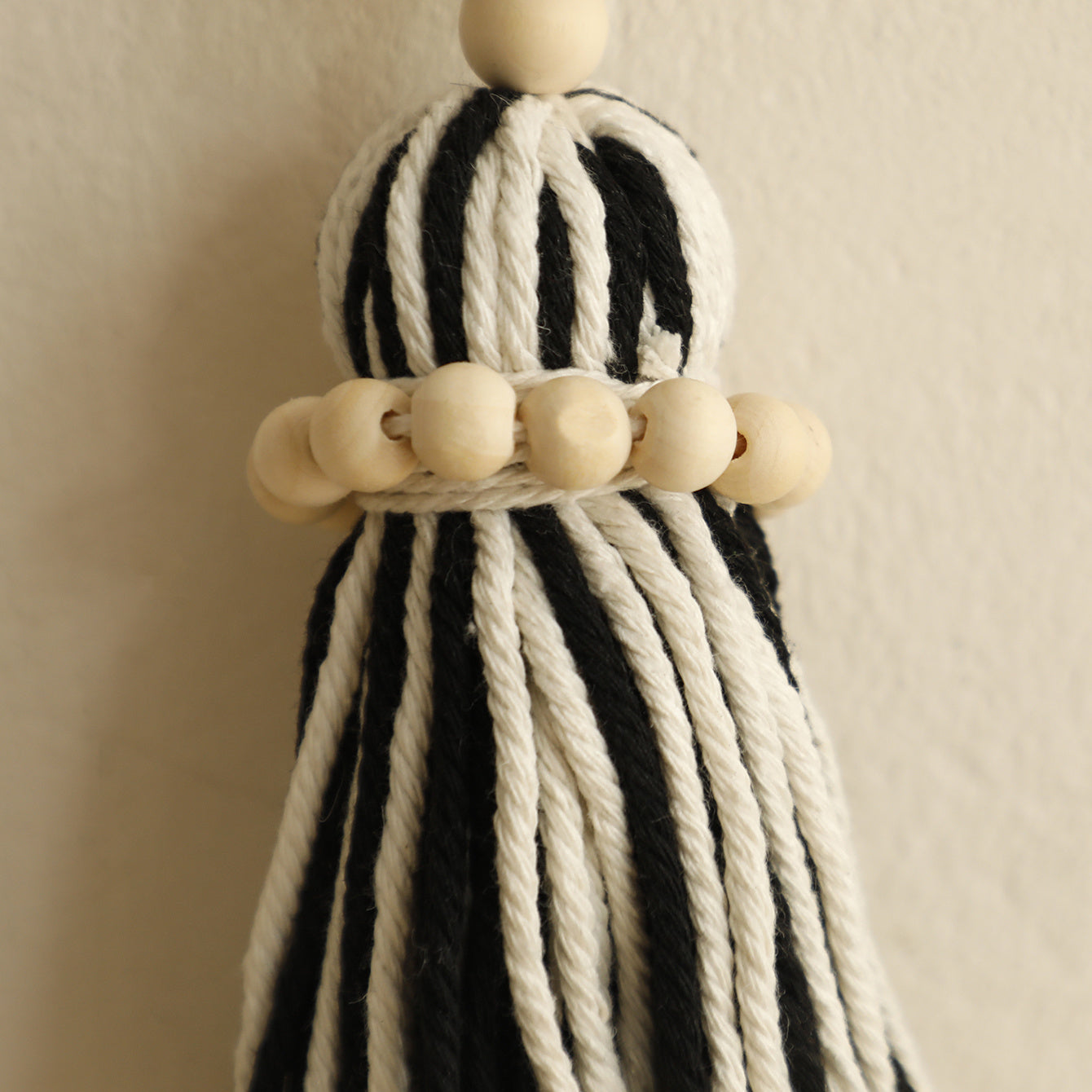 Богемная деревянная штора-лента с черно-белым полосатым кисточкой для спальни и гостиной