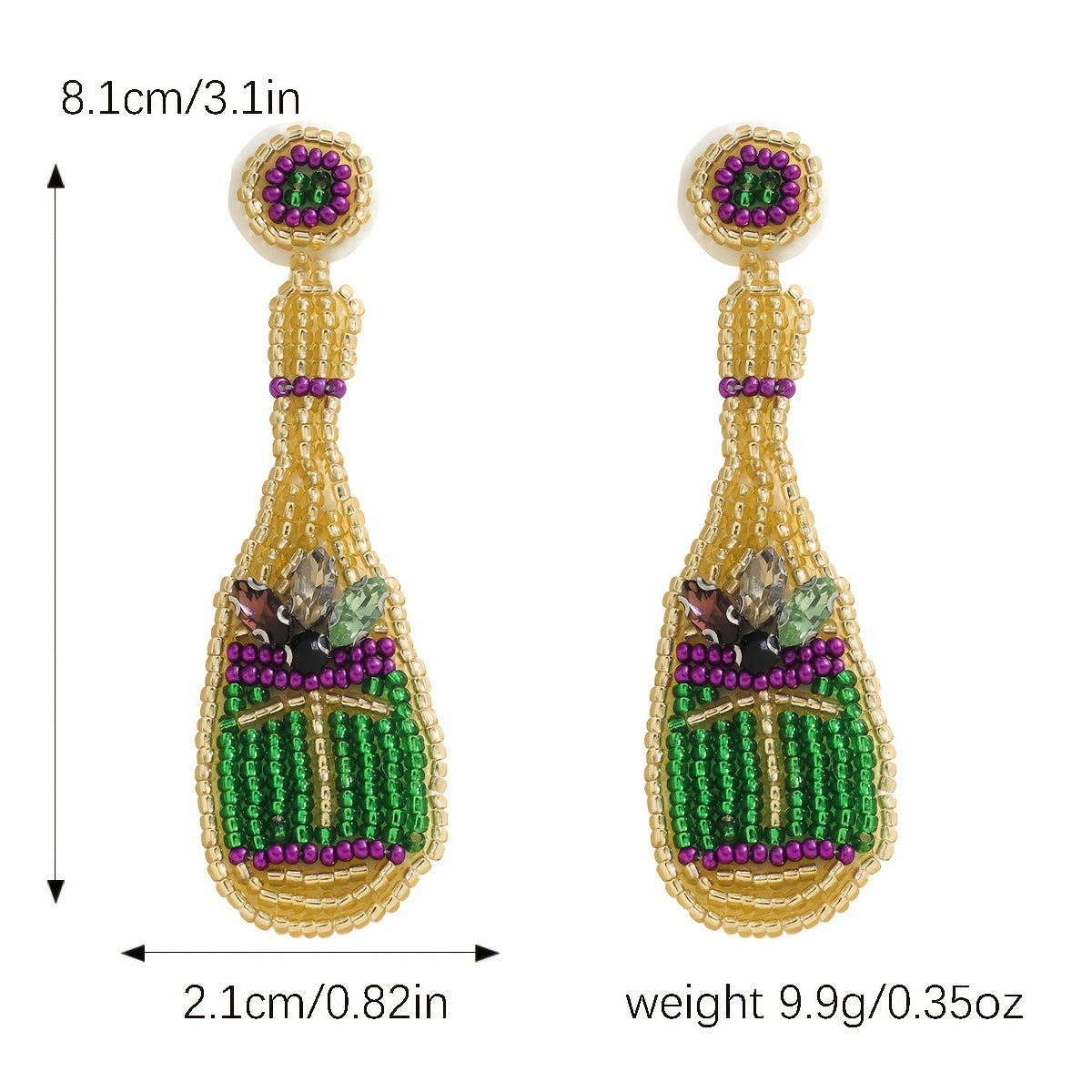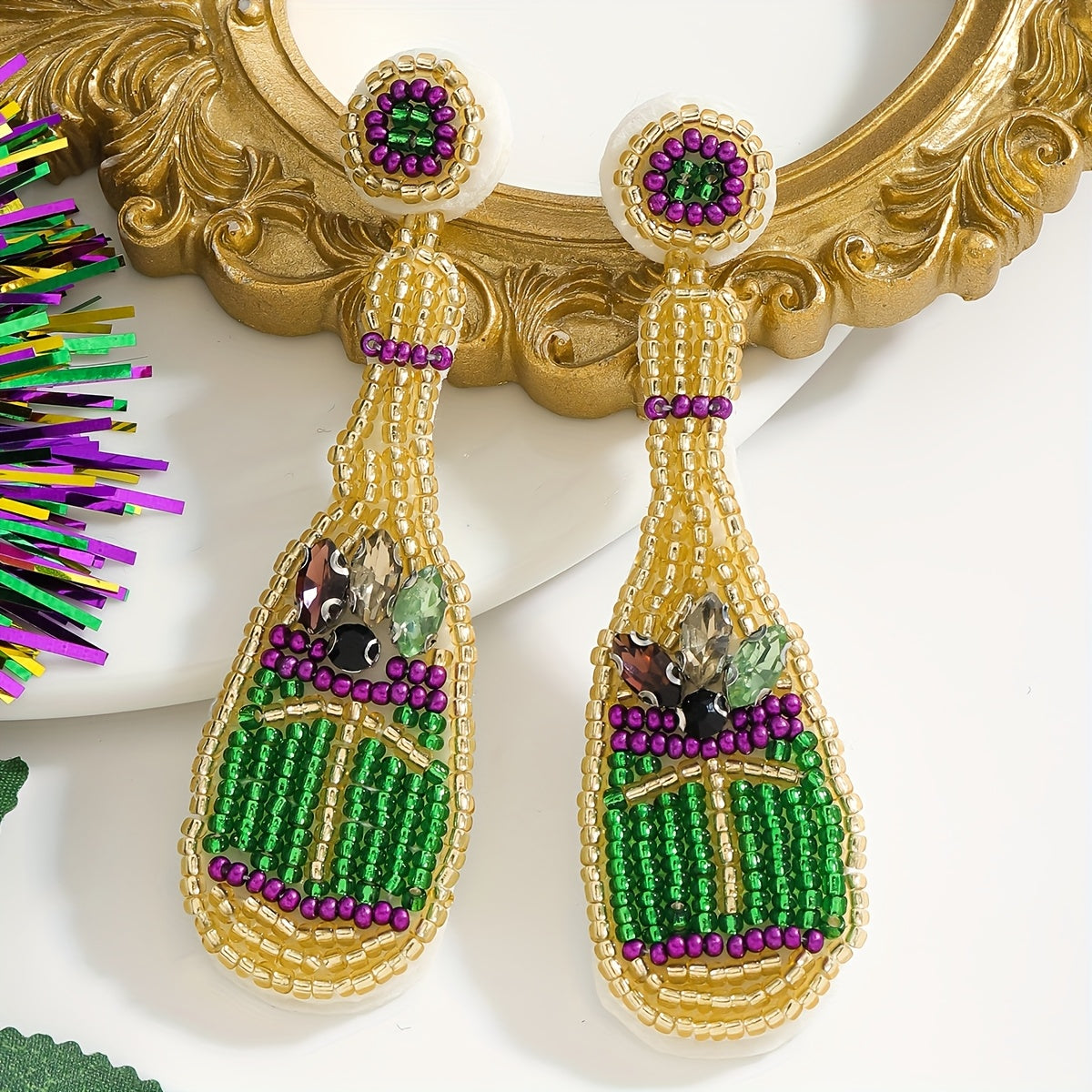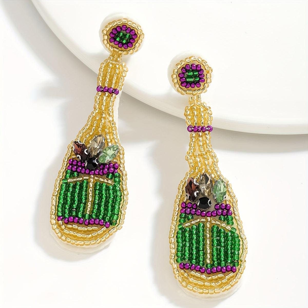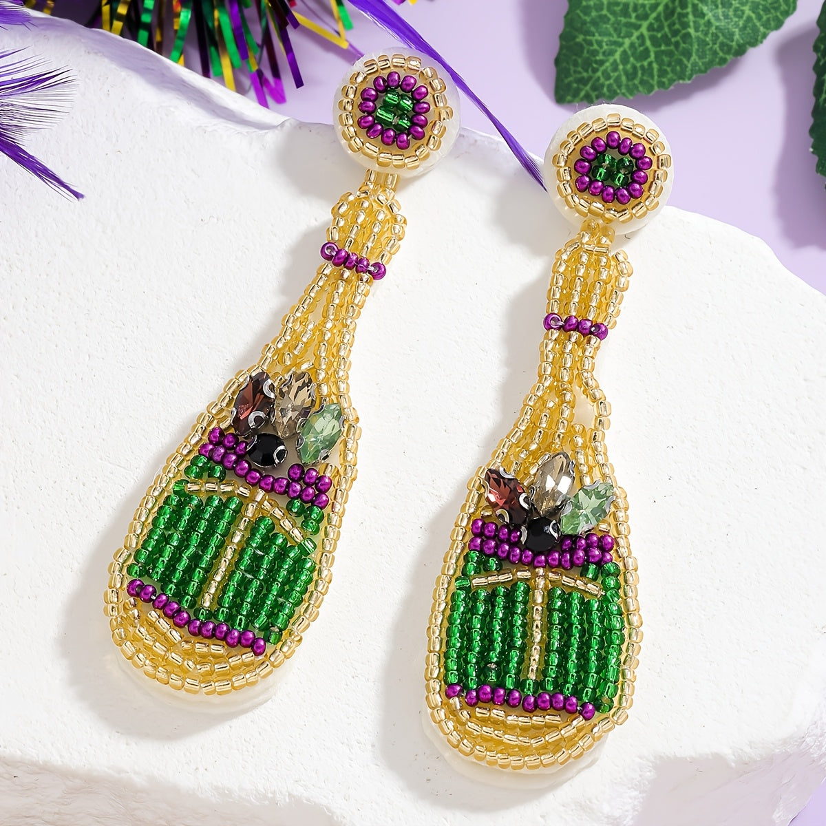 Бохо-шик серьги с подвесками в виде бусин для винных бутылок на Марди Гра с геометрическими акцентами из страз - с нержавеющими стальными штангами для фестивалей и повседневного гламура