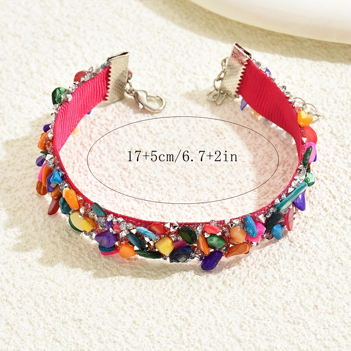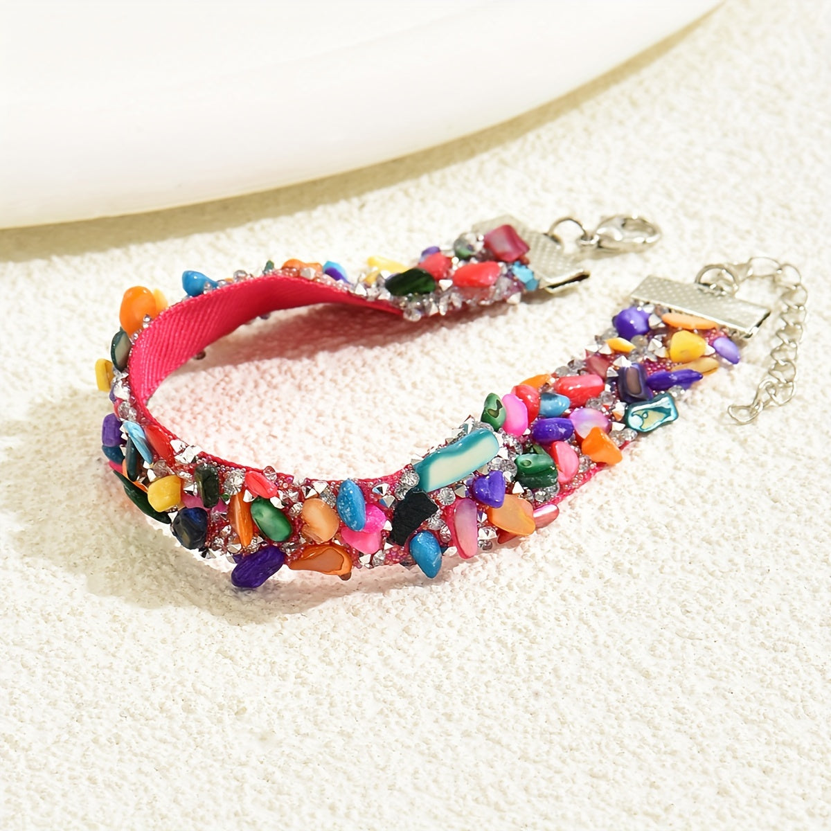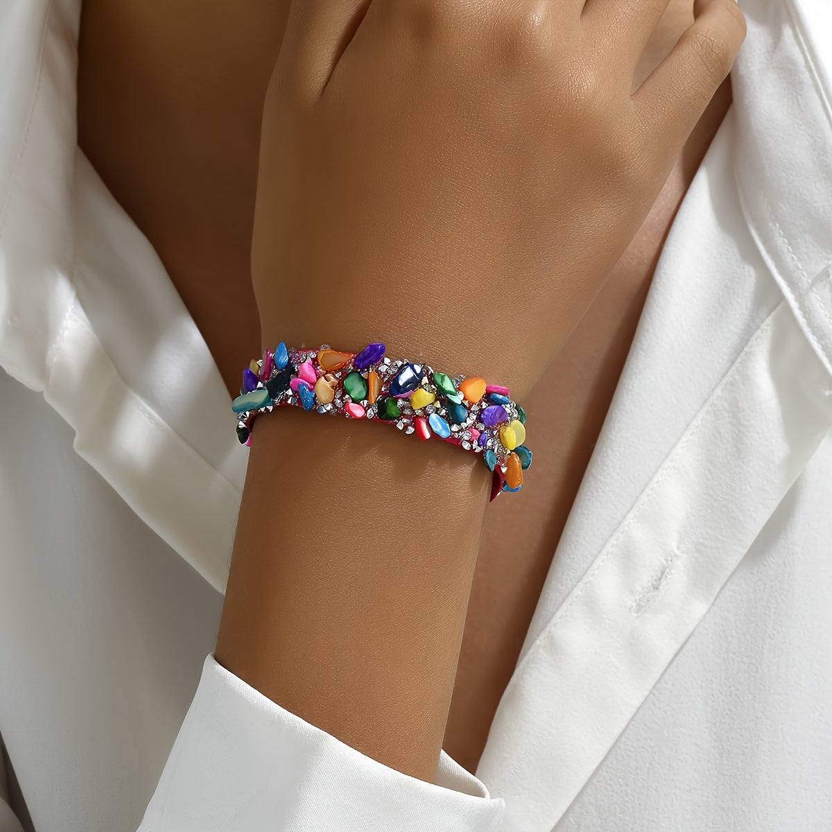 Браслет в стиле бохо с широким ободком, украшенный яркими инкрустированными блестящими искусственными камнями и стразами, элегантное украшение для рук