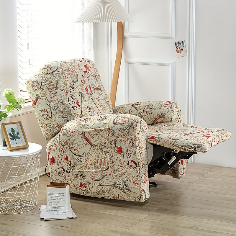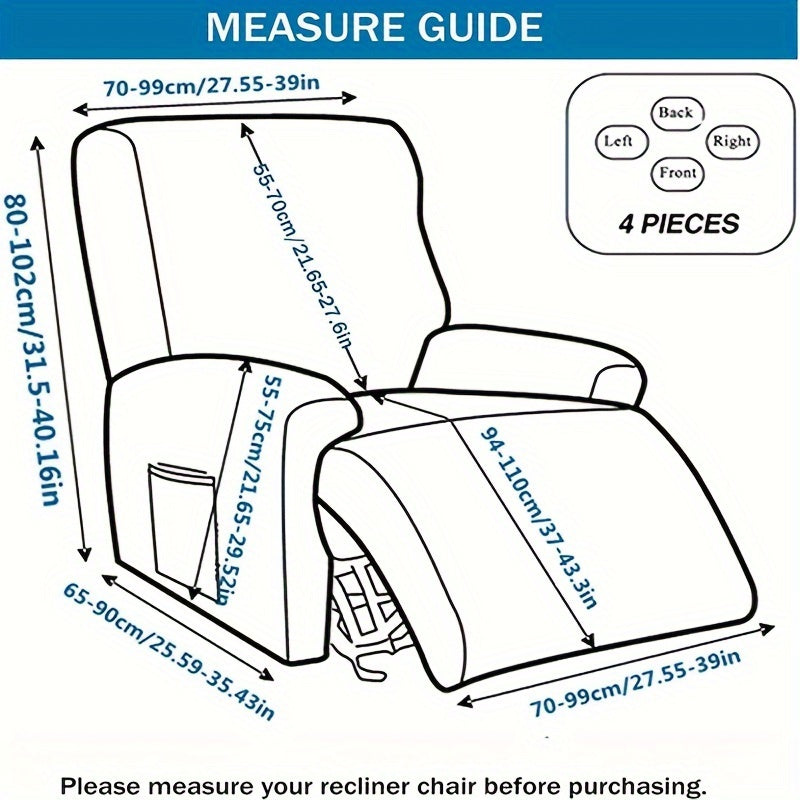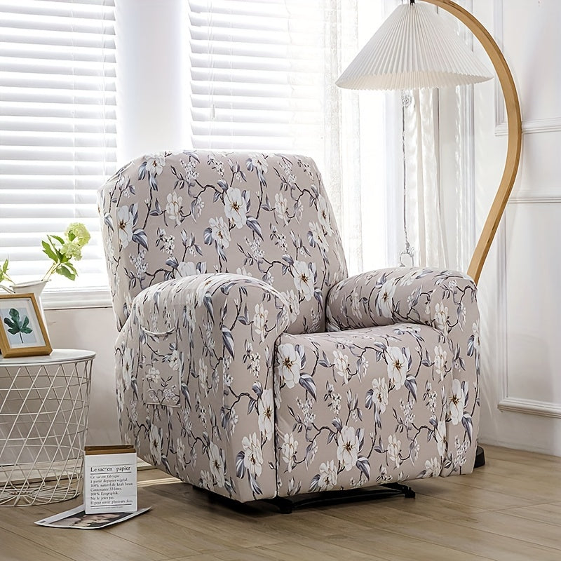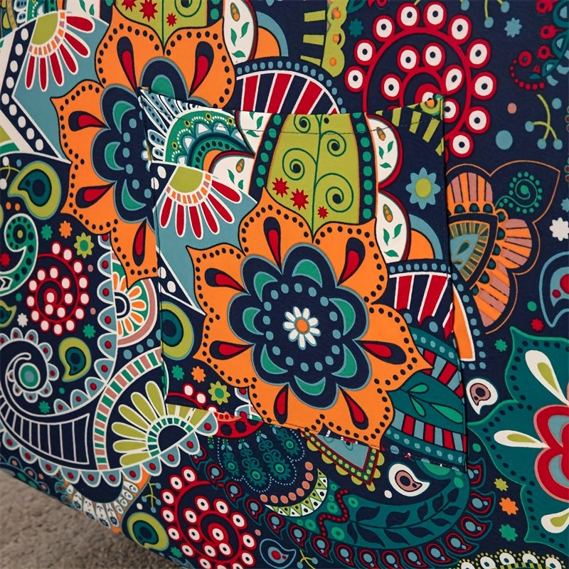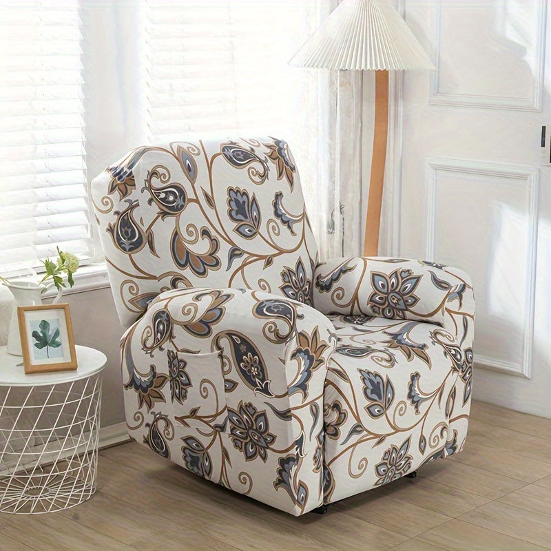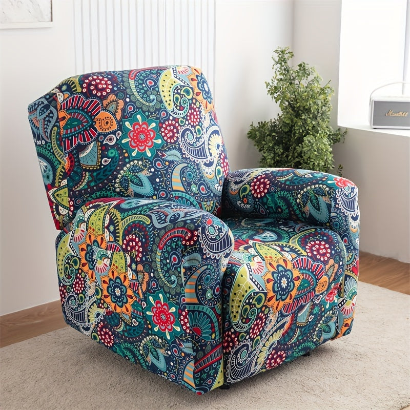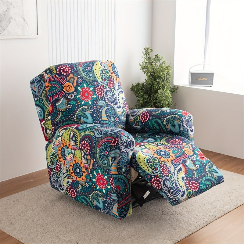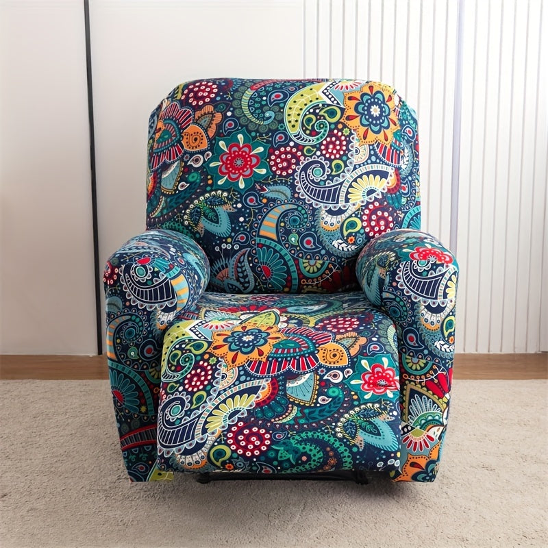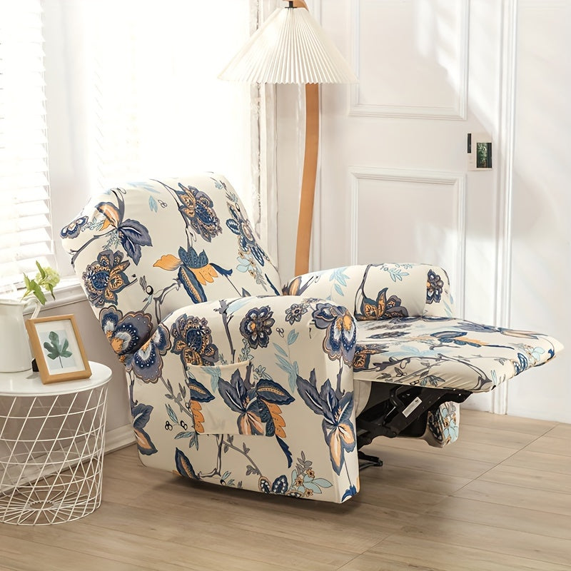 Чехол для кресла-качалки в стиле бохо с карманом, нескользящий, машинная стирка, синего цвета, изготовлен из полиэстера и спандекса.