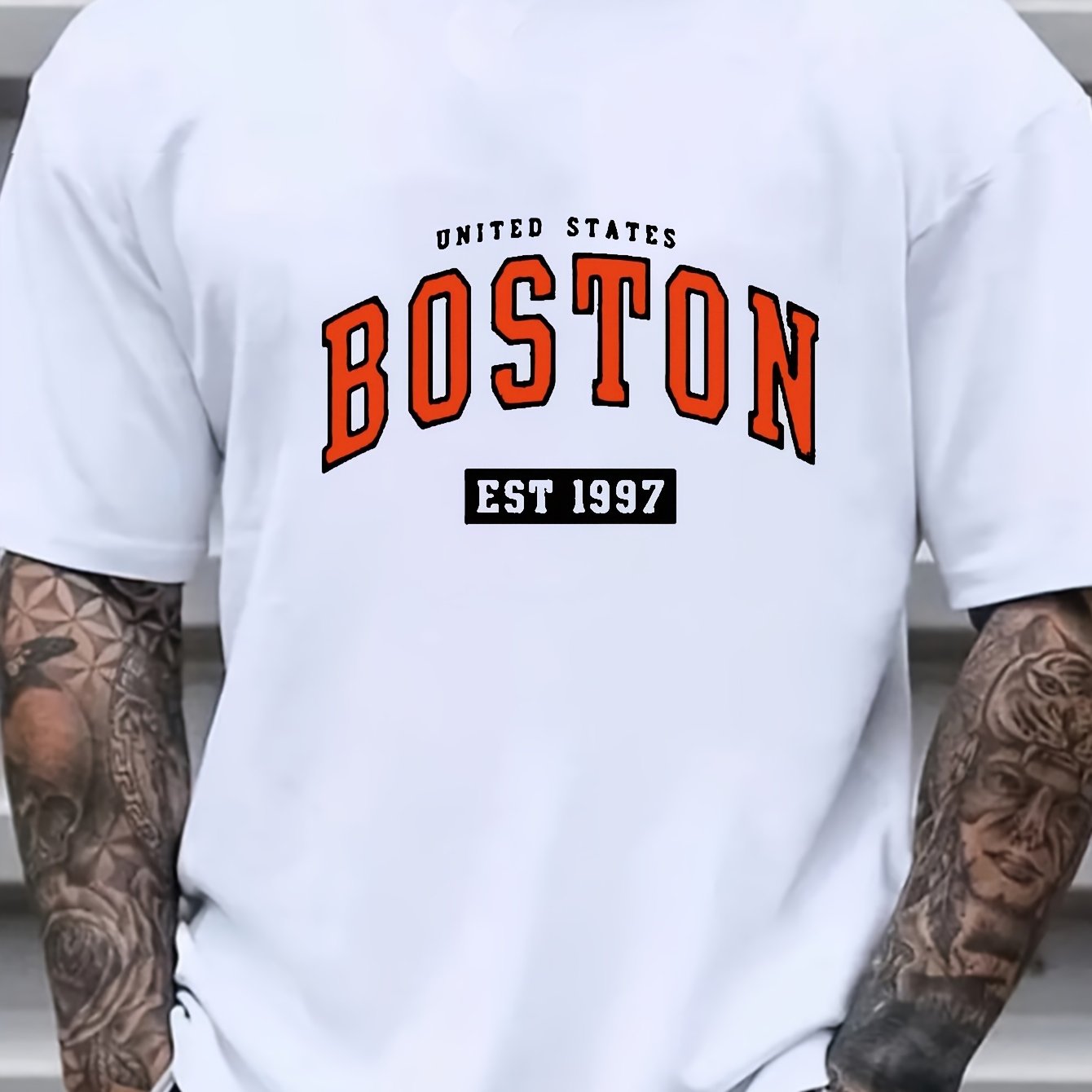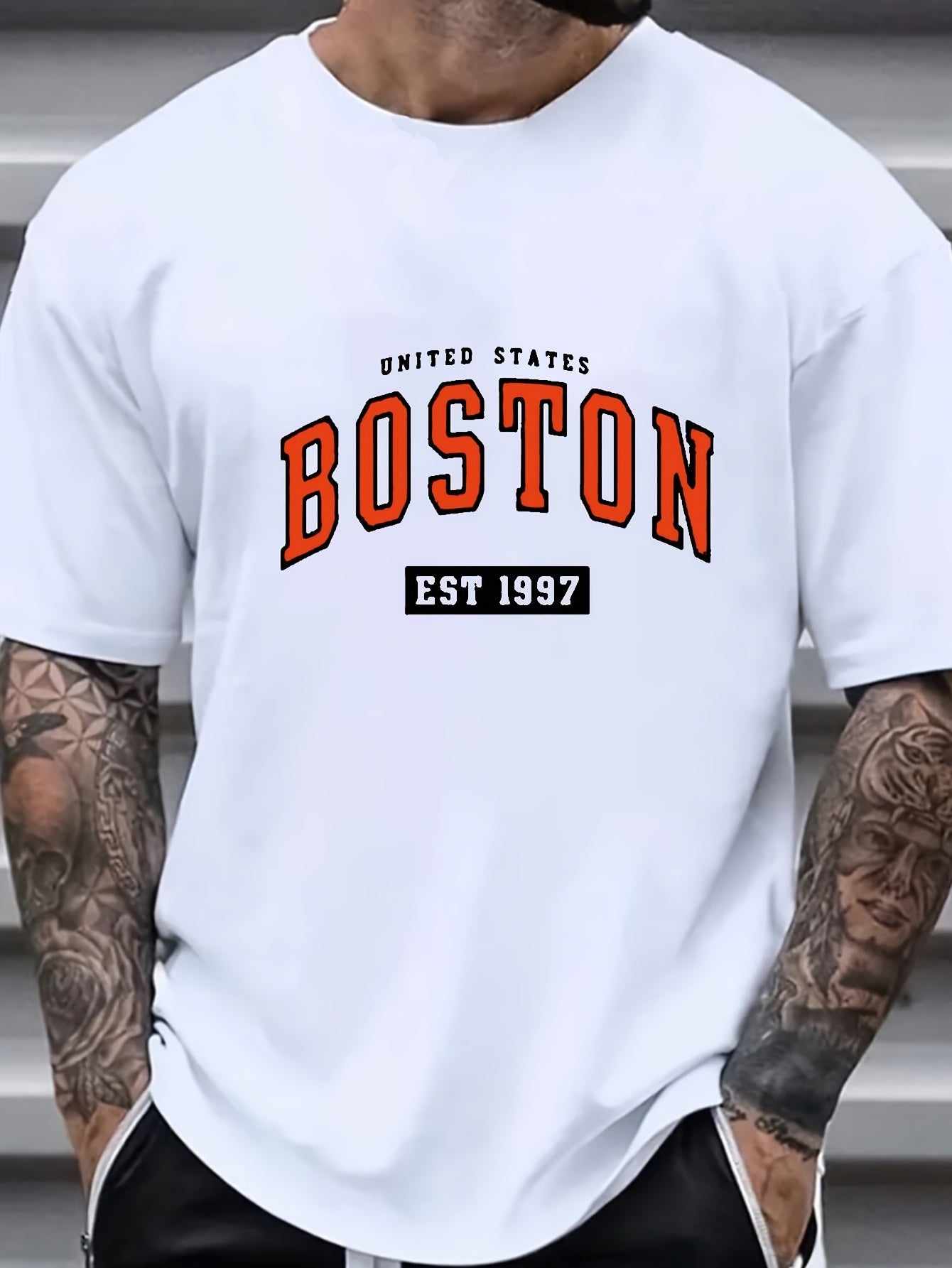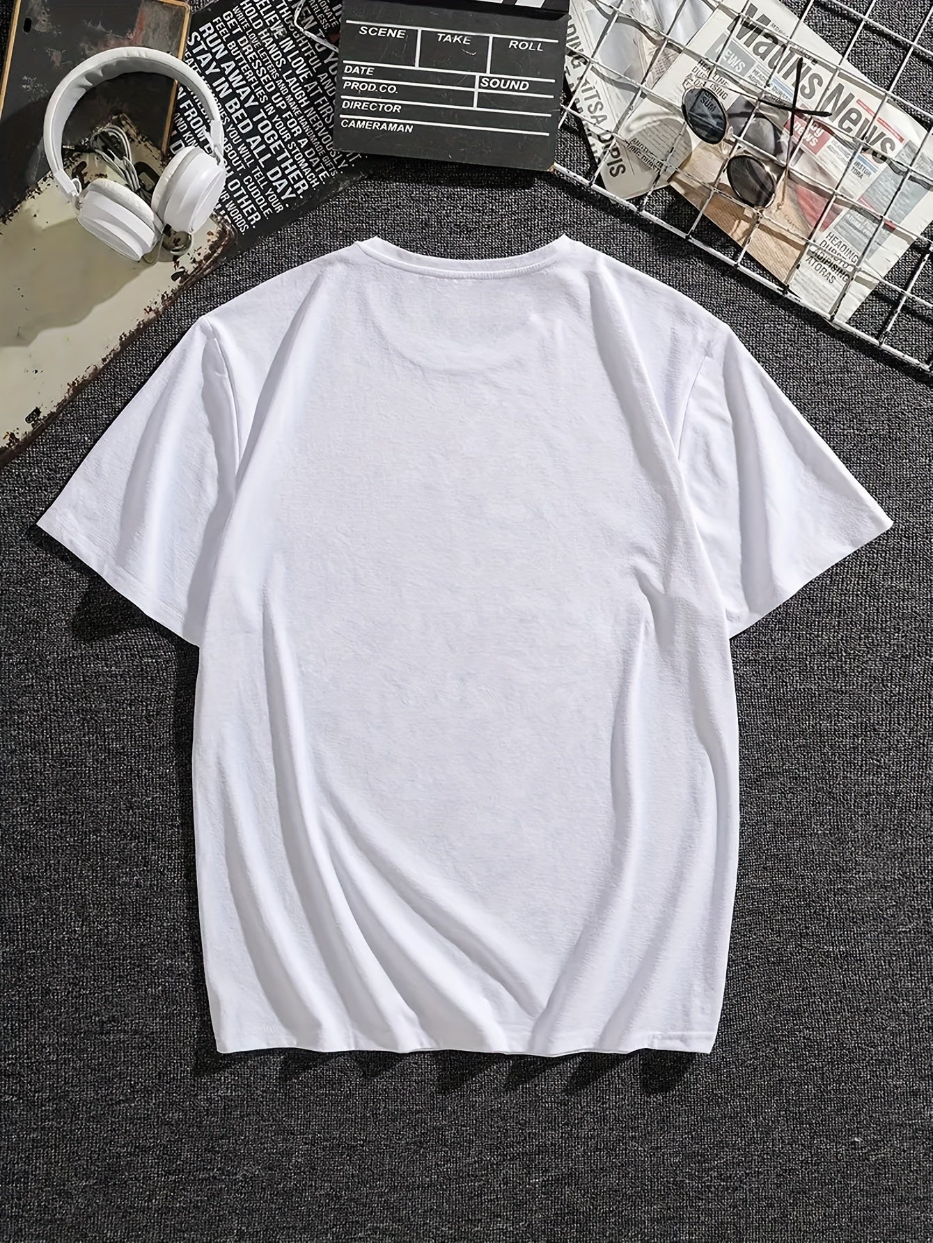 Мужская летняя футболка с алфавитным узором, круглый вырез, хлопок-полиэстер, обычный крой, увеличенный размер