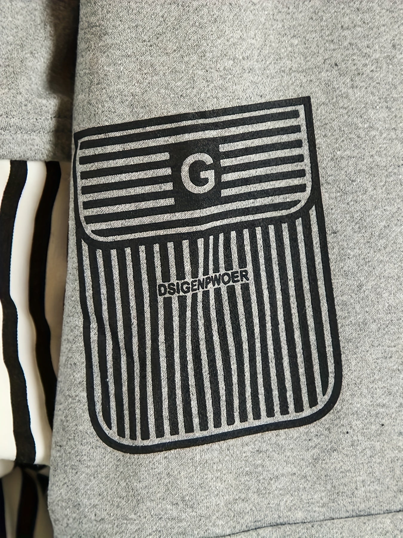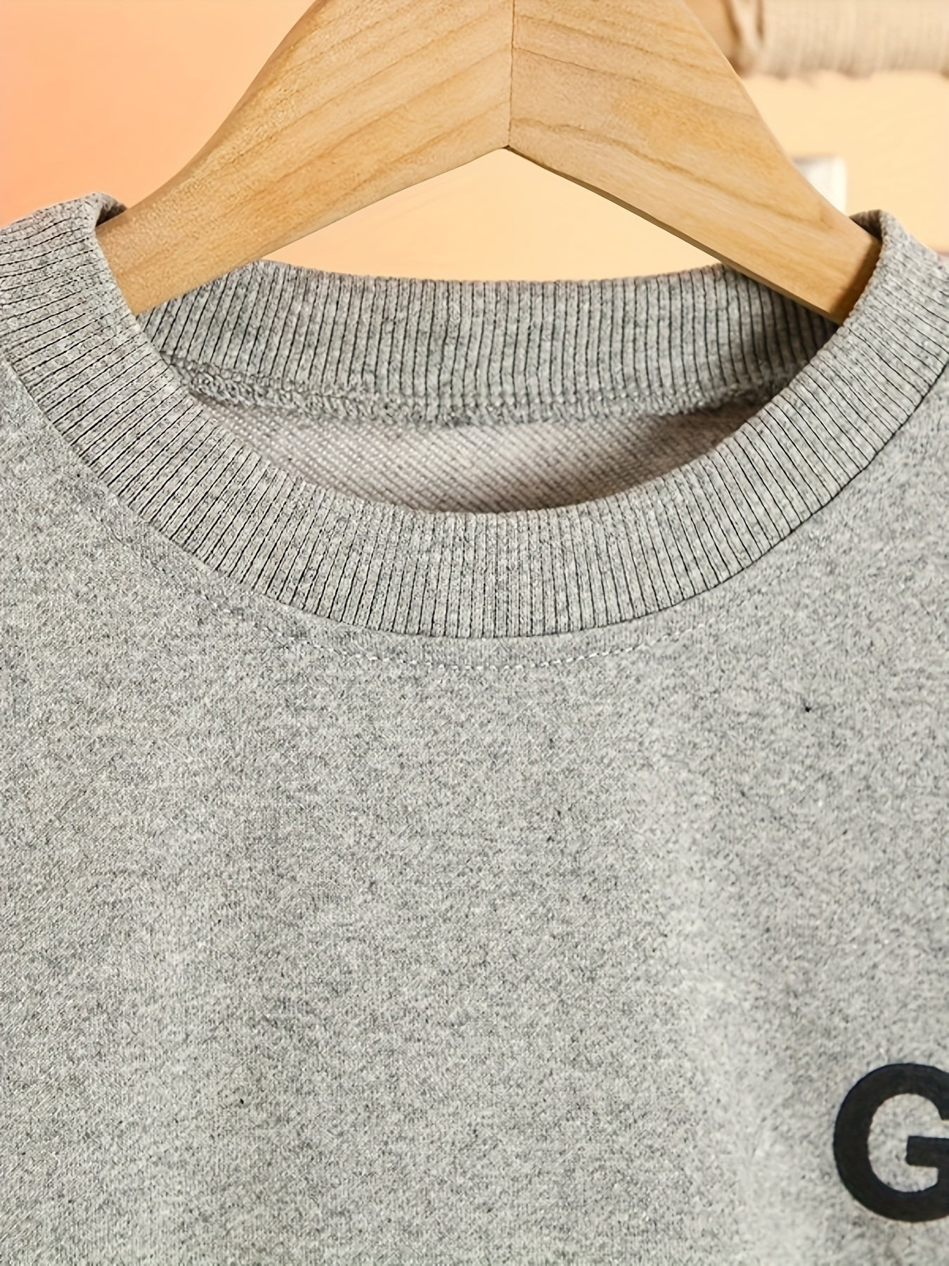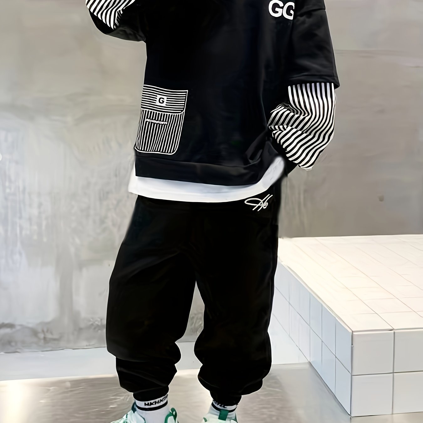 Детский комплект для мальчиков: уличный стиль, свитшот с круглым вырезом и спортивные штаны с карманами и принтом для весны и осени, повседневный уличный стиль