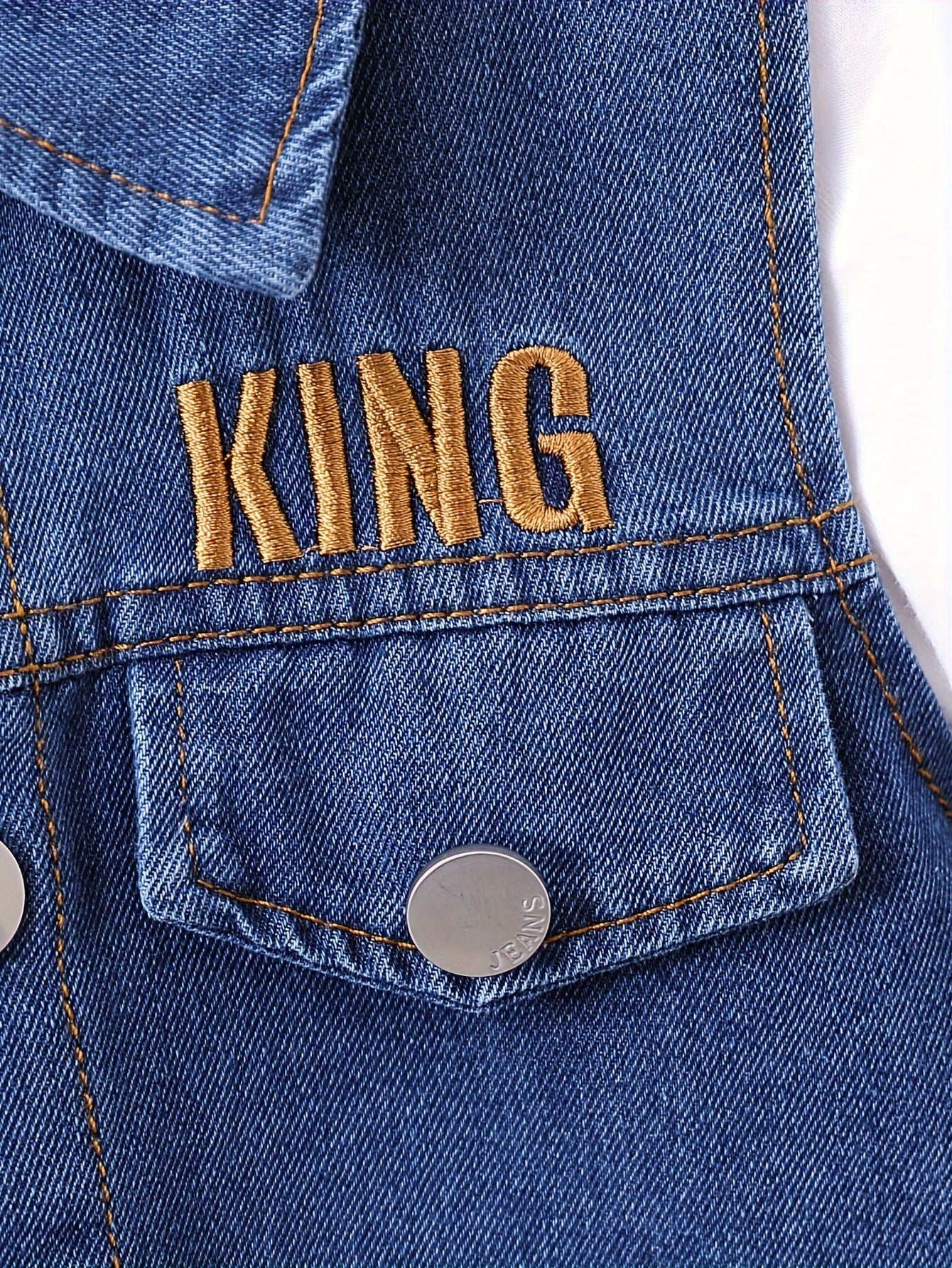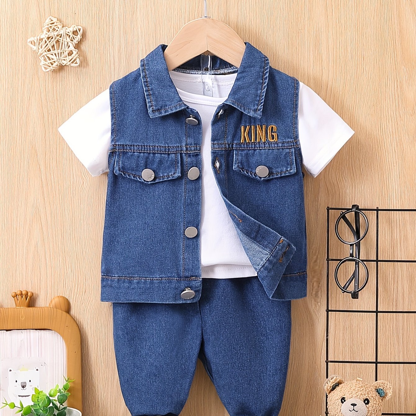 Джинсовый комплект для мальчиков с жилетом, футболкой с вышивкой букв и брюками, весна-лето