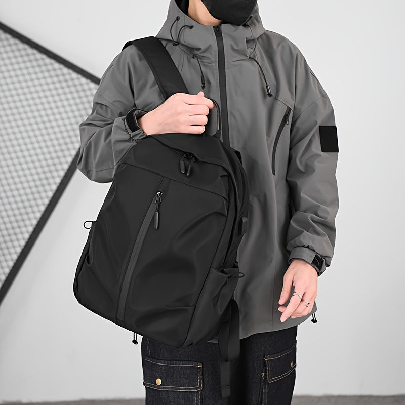 Мужской рюкзак водонепроницаемый однотонный с застежкой-молнией, повседневный, для путешествий и школы