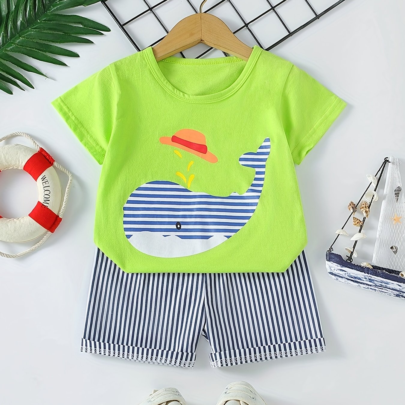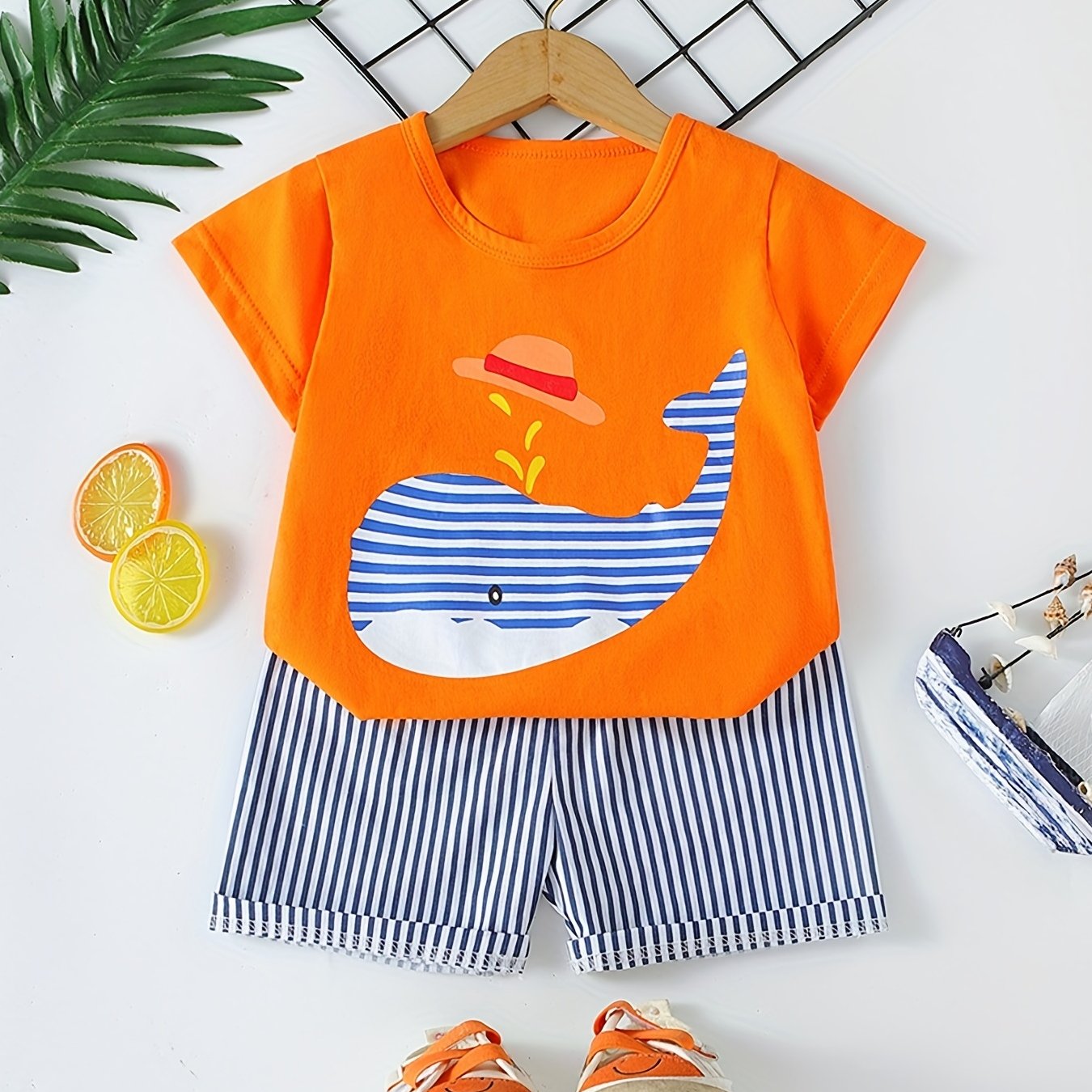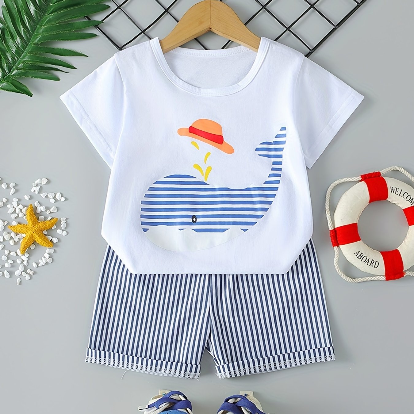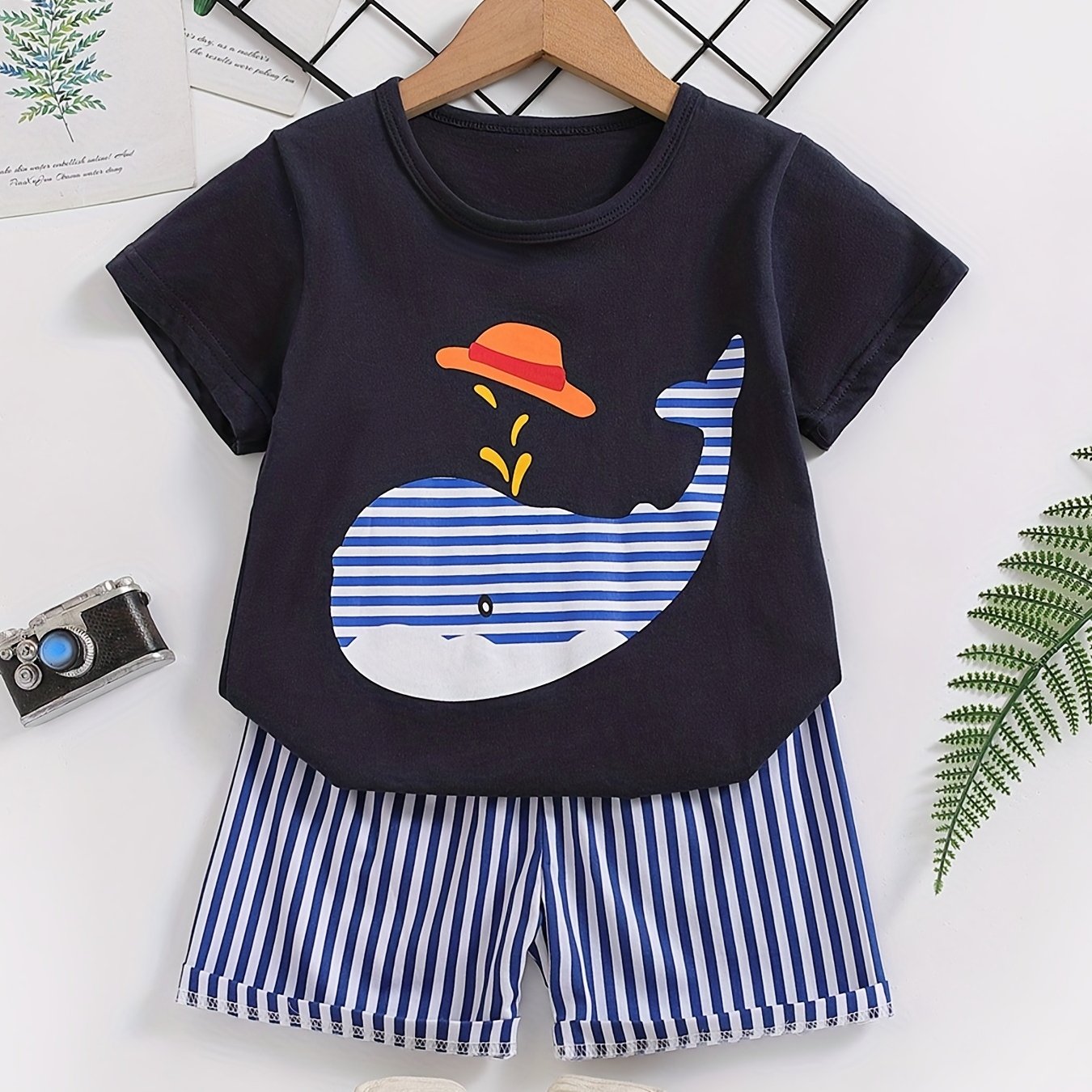 Детская мальчиковая китовая повседневная одежда: хлопковая футболка и полосатые шорты, летняя одежда