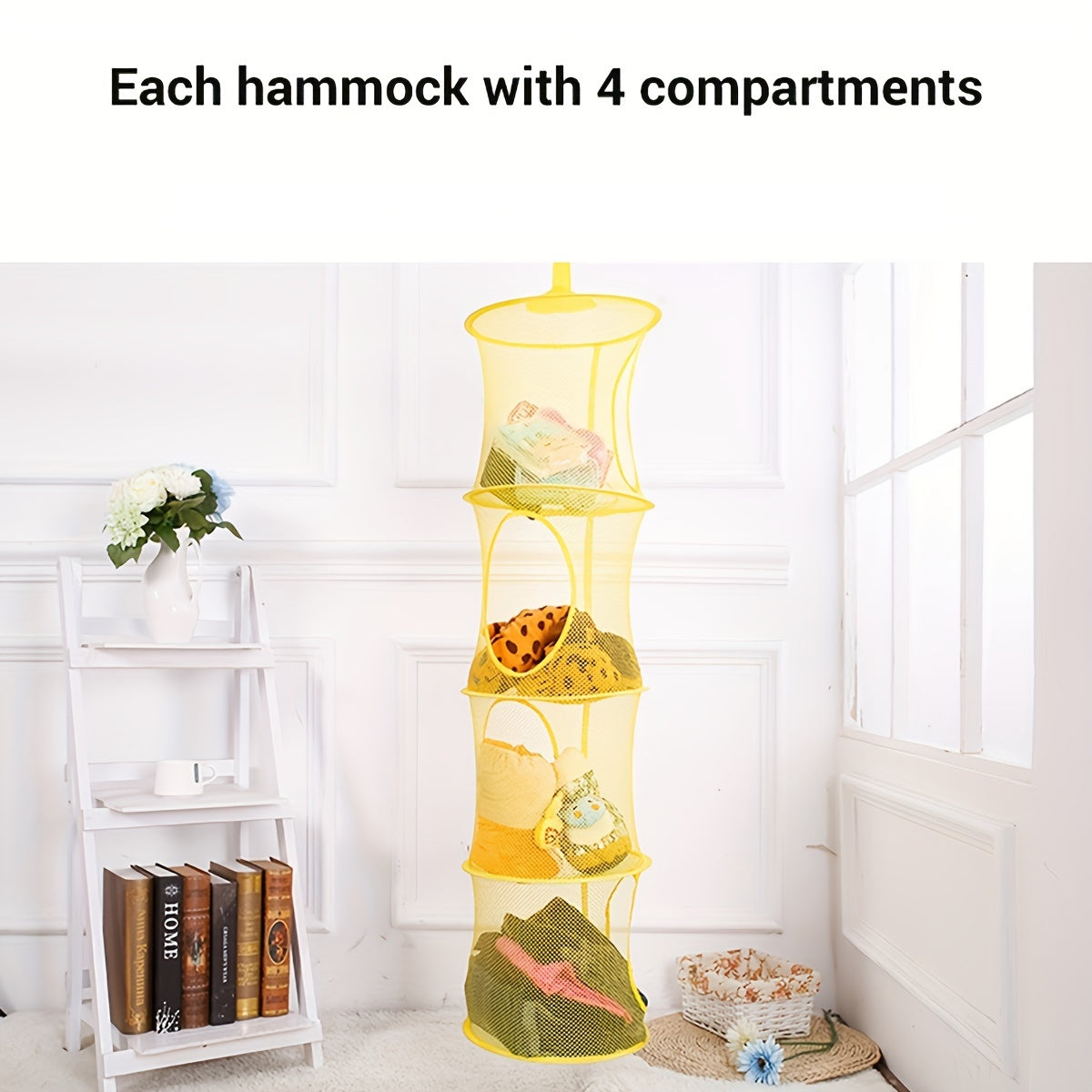 Дышащий сетчатый органайзер для хранения с 4 ярусами для мягких игрушек, перчаток, шляп и носок | Подвесная корзина с складной сушилкой для детской и спальни | Идеальный подарок для Рождества, Дня святого Валентина и дней рождения
