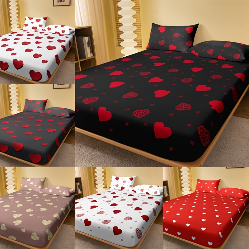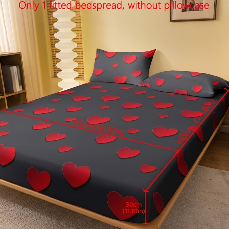 Простыня с резинкой в красном принте «Любовь», 1 шт. (Наволочка не включена). Мягкое и комфортное постельное белье, защитник матраса для спальни или гостевой комнаты с глубокими карманами. Только простыня с резинкой.