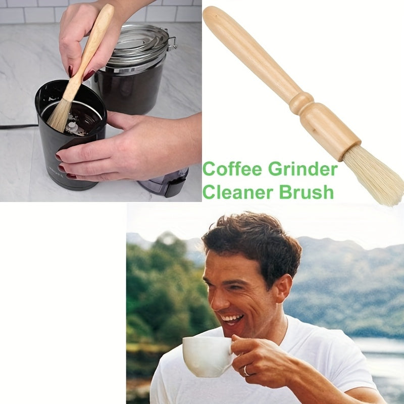 Щетки для чистки кофемолок и кофейной гущи с деревянной ручкой и натуральной щетиной из коровьего волоса, а также кисточка для выпечки.