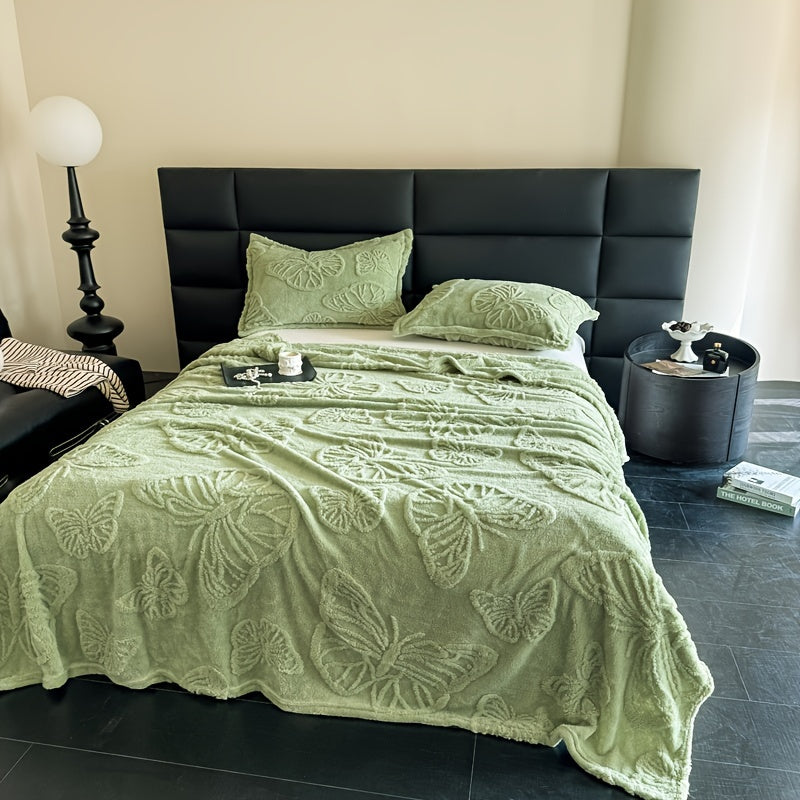 Плед "Бабочка Зеленый" из тафты однотонного жаккарда, идеально подходит для кровати, дивана или кушетки благодаря своему многофункциональному дизайну.