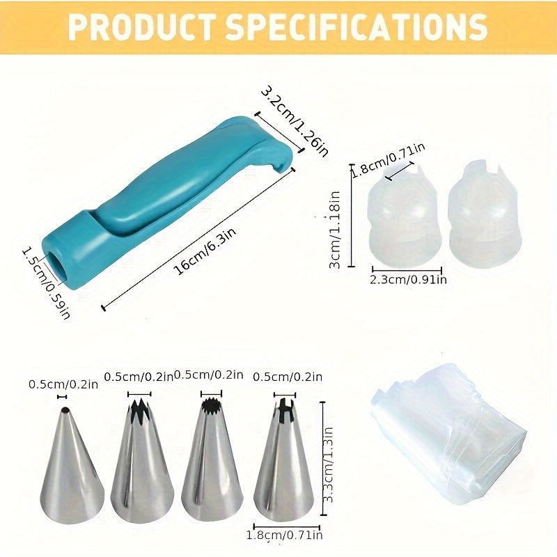 Набор для украшения тортов — включает в себя 17 профессиональных насадок для кондитерских изделий, точную ручку и кондитерские мешки для самостоятельного украшения тортов.