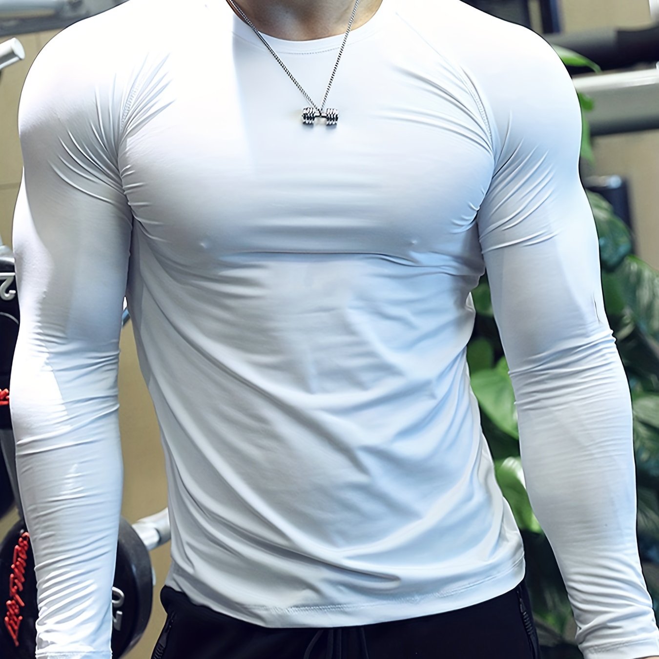 Мужская черная длинная рубашка с компрессионным эффектом, дышащая, быстро сохнущий полиэстер для спортзала, бега, на открытом воздухе