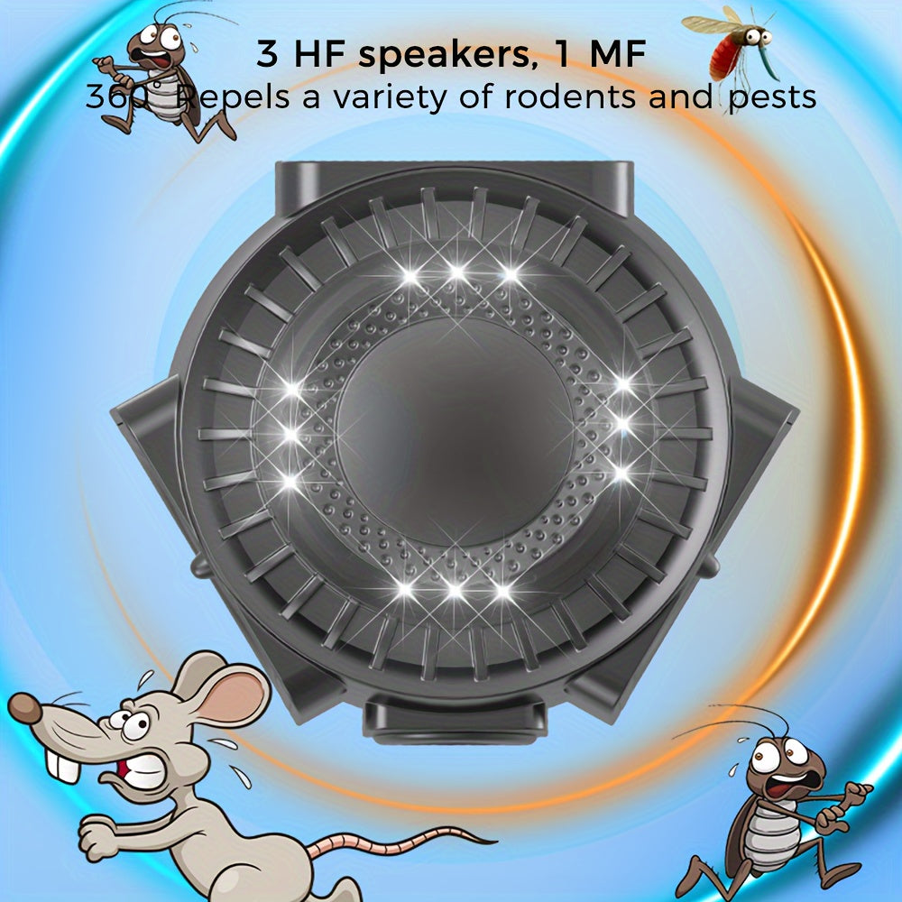 Cappsu Soundwave технология Репеллент для грызунов - USB-зарядка, высокочастотный отпугиватель вредителей с 3 динамиками и датчиком движения. Эффективен против мышей, белок, крыс в доме, чердаке, гараже, автодоме.
