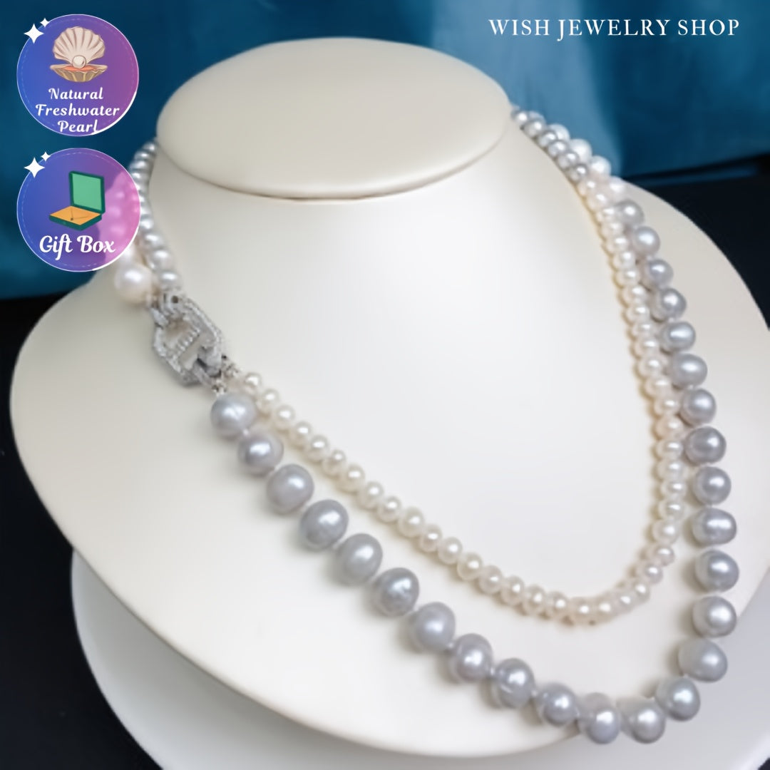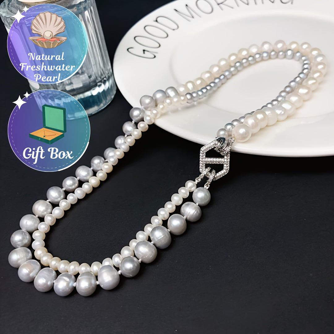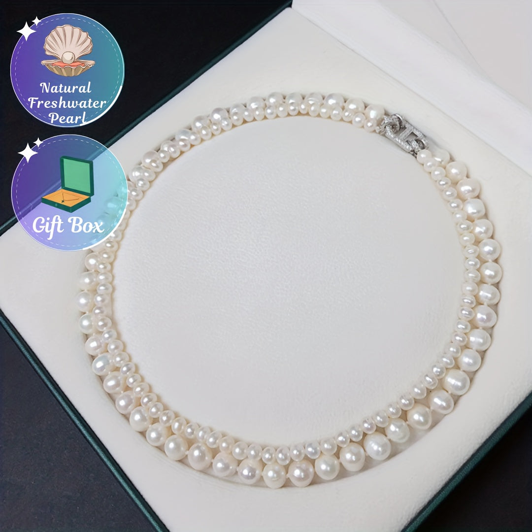 Двойная цепочка из пресноводных жемчужин для женщин, элегантное украшение, подарочная коробка