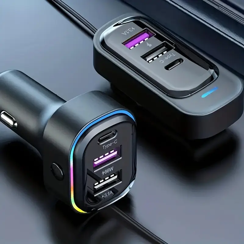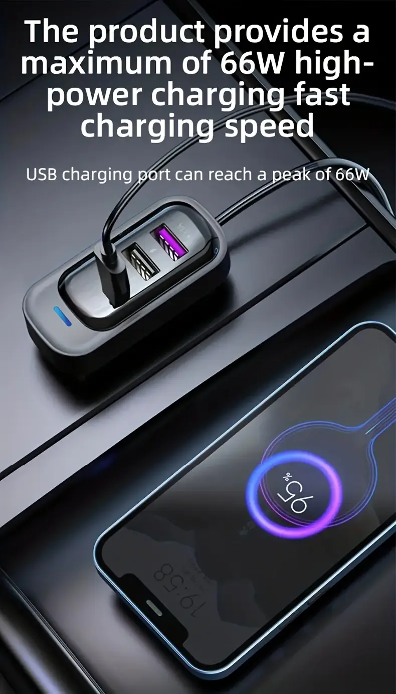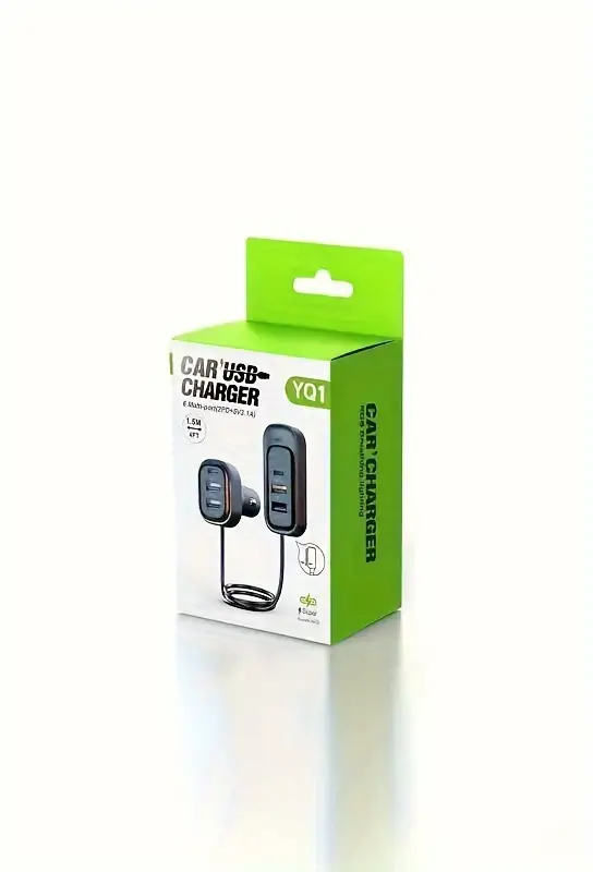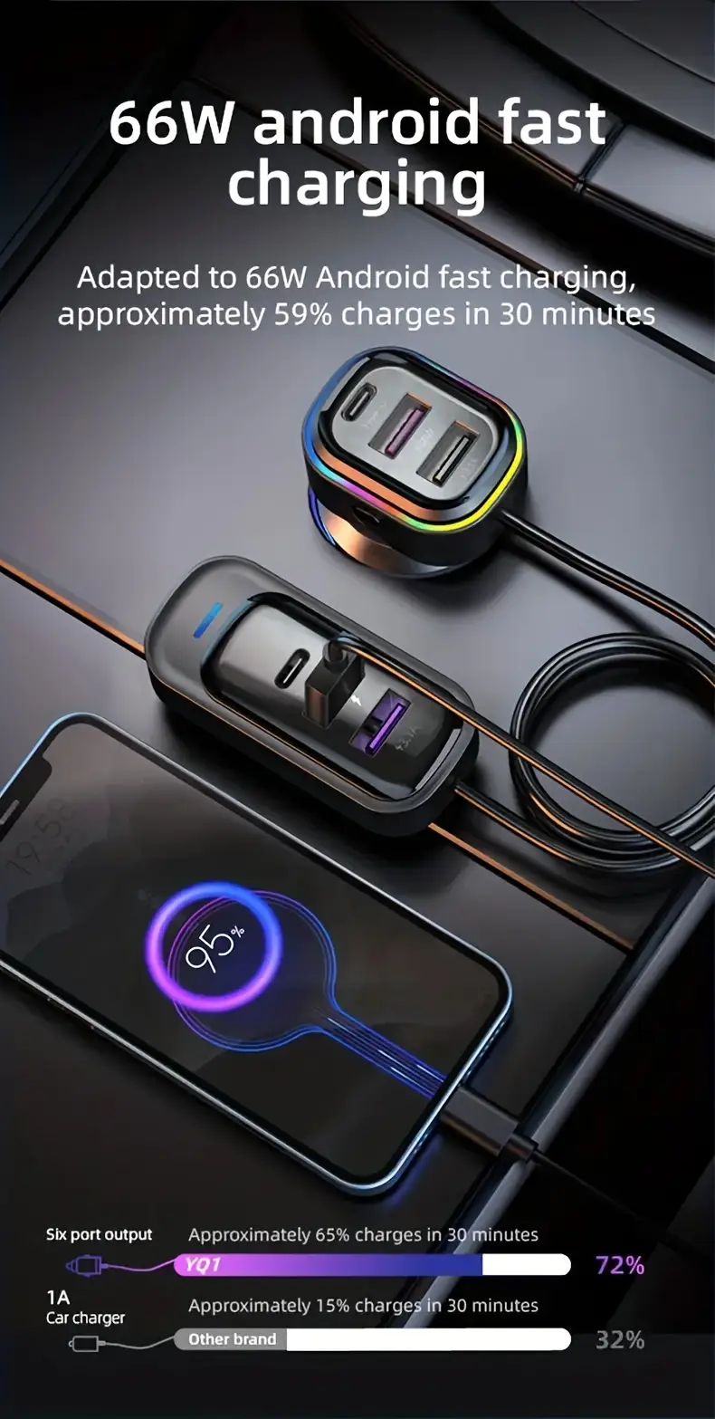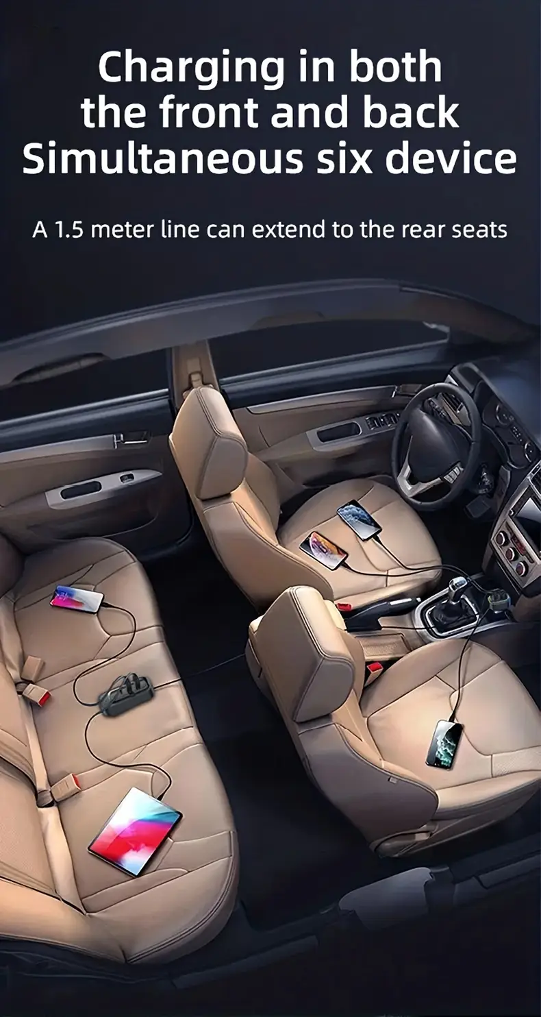 Удлинительный кабель для быстрой зарядки автомобиля на 6 портов с Type-C USB и противоскользящим зажимом