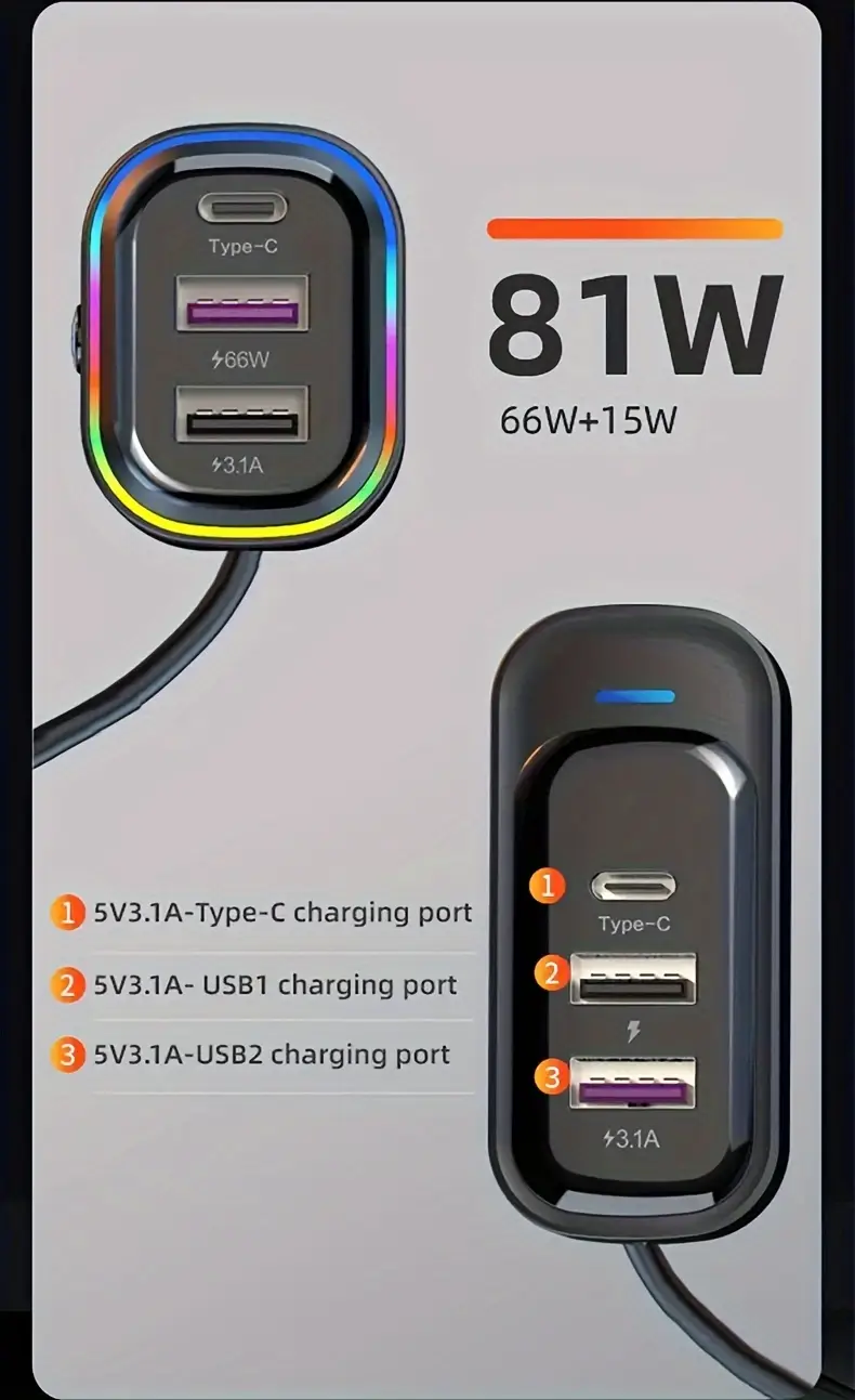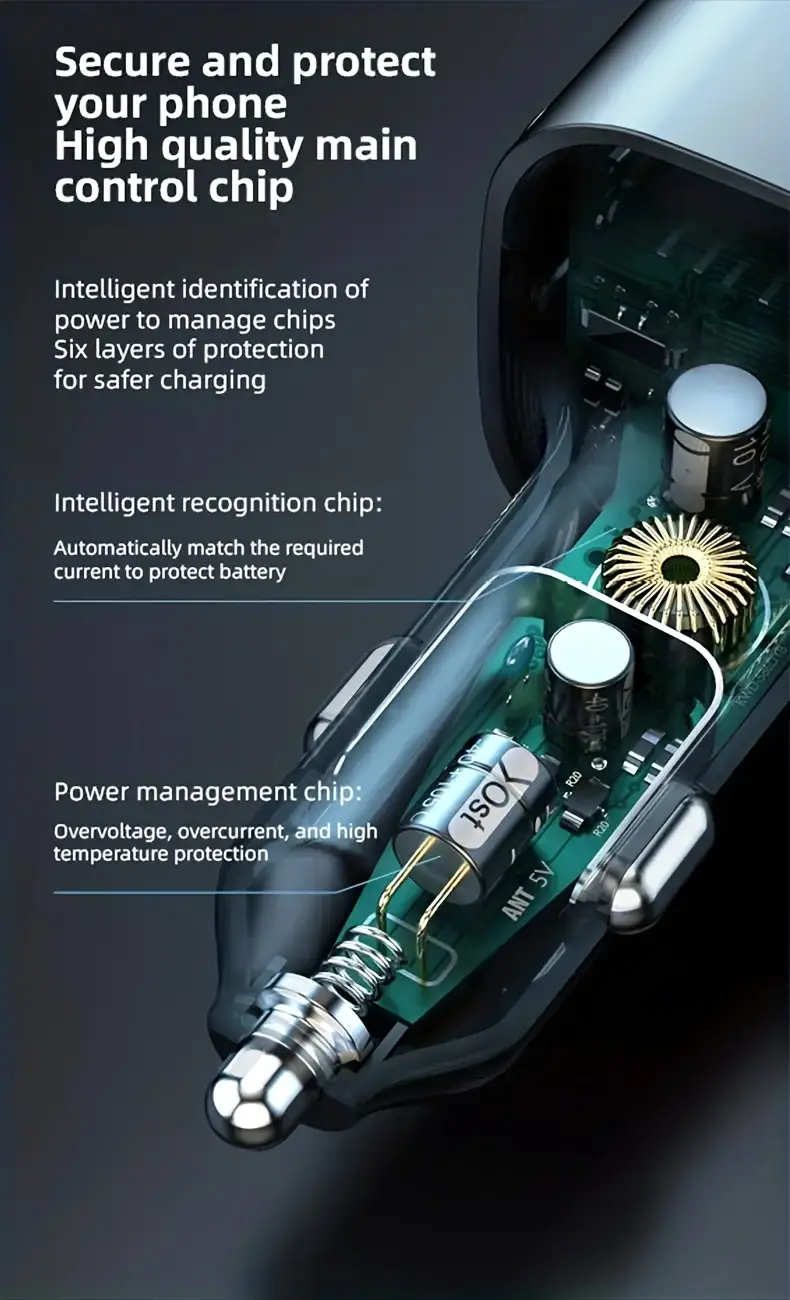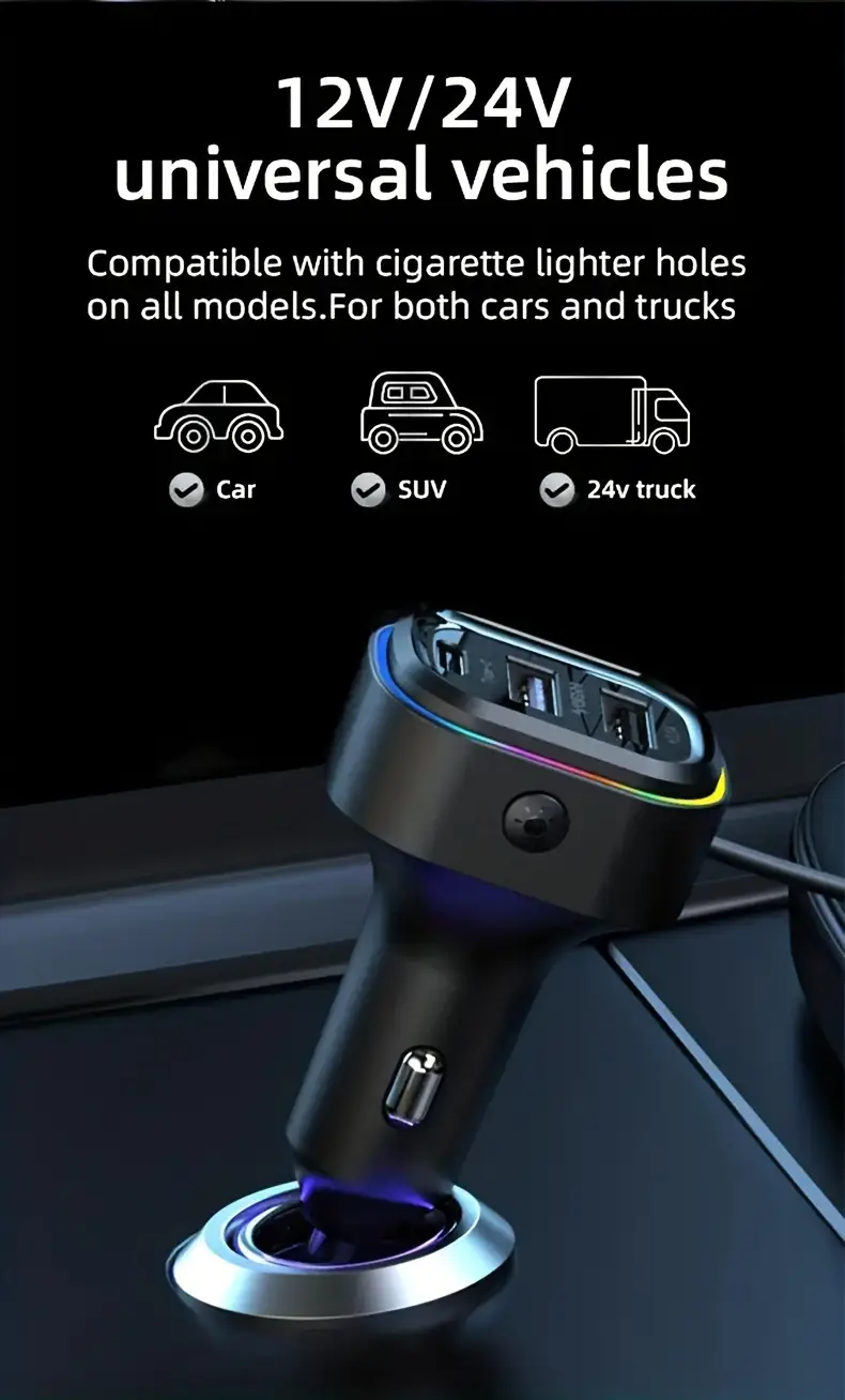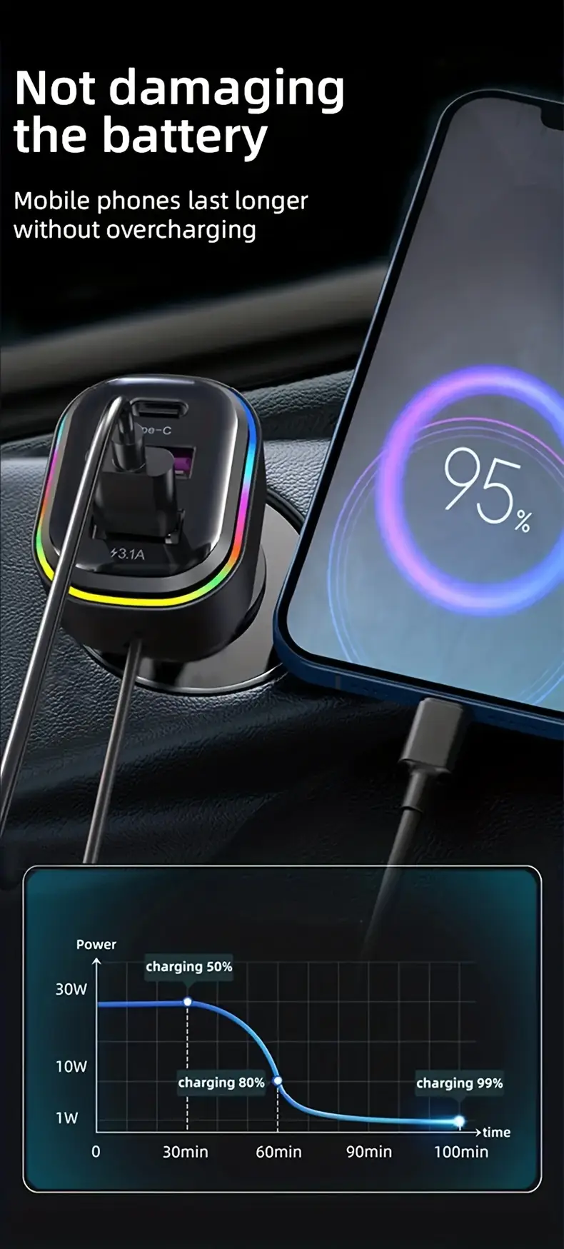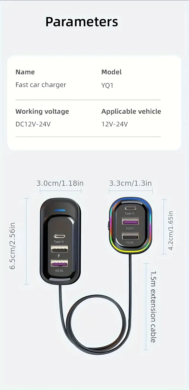 Удлинительный кабель для быстрой зарядки автомобиля на 6 портов с Type-C USB и противоскользящим зажимом