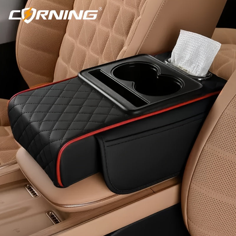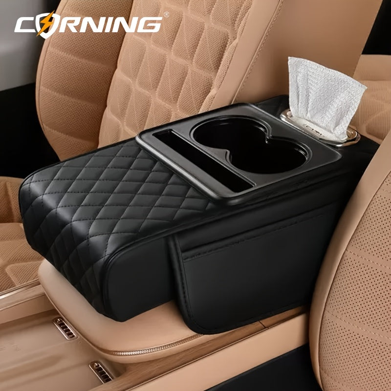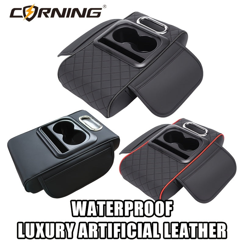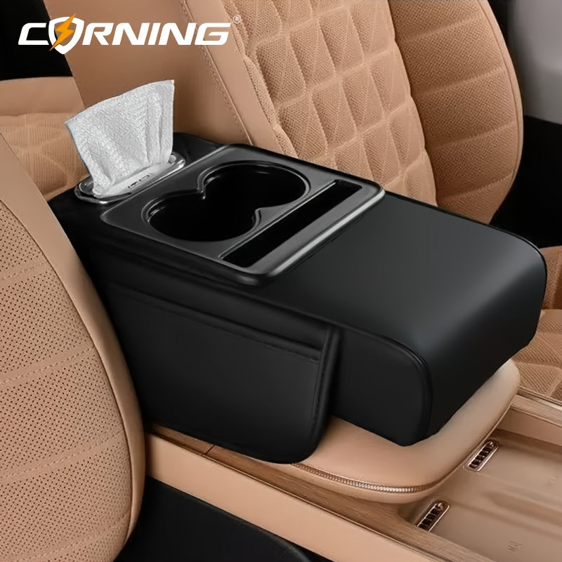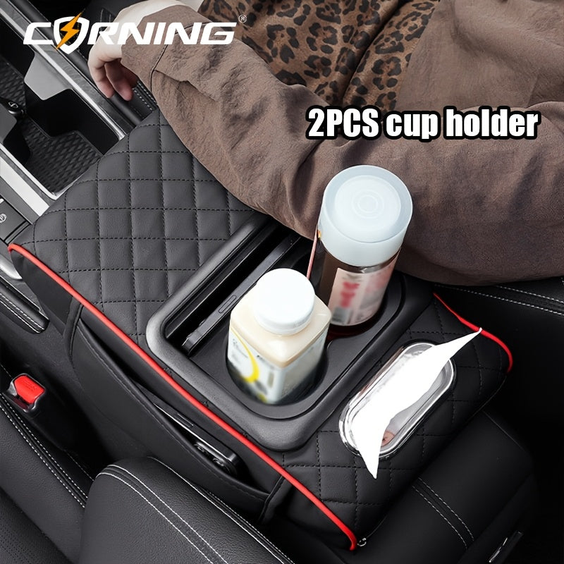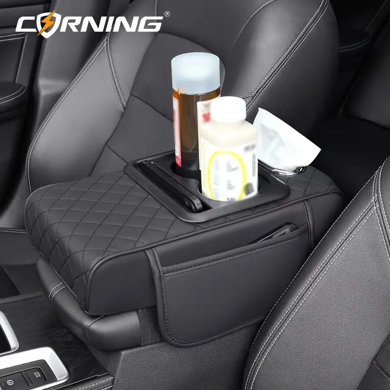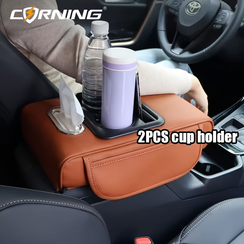 Автомобильный подлокотник с двумя держателями для чашек, многофункциональный органайзер для хранения, черный