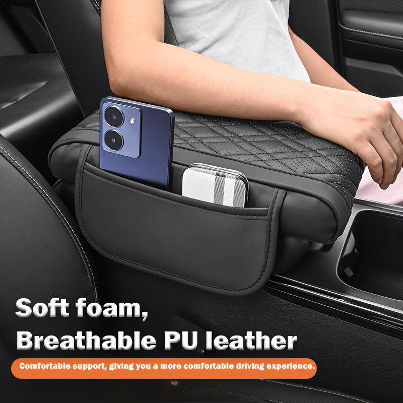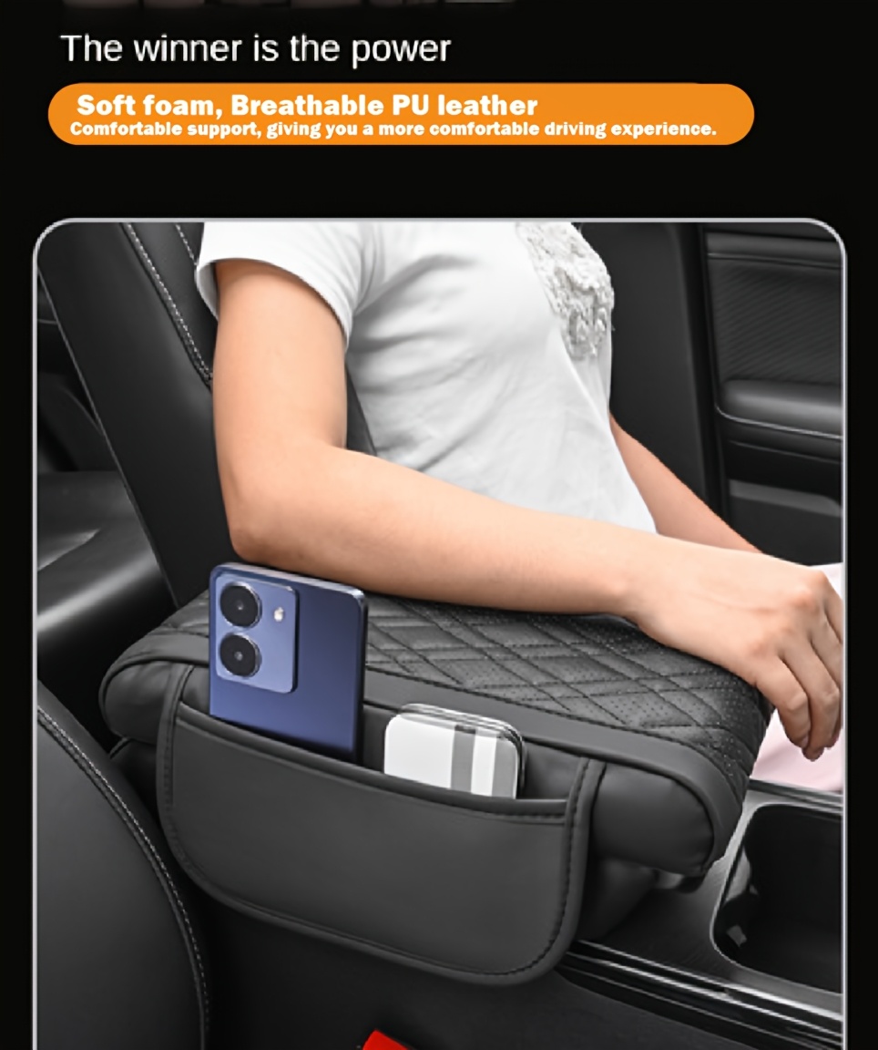 Подушка подлокотника для автомобиля с держателем для телефона, из искусственной кожи, эргономичная, регулируемая по высоте