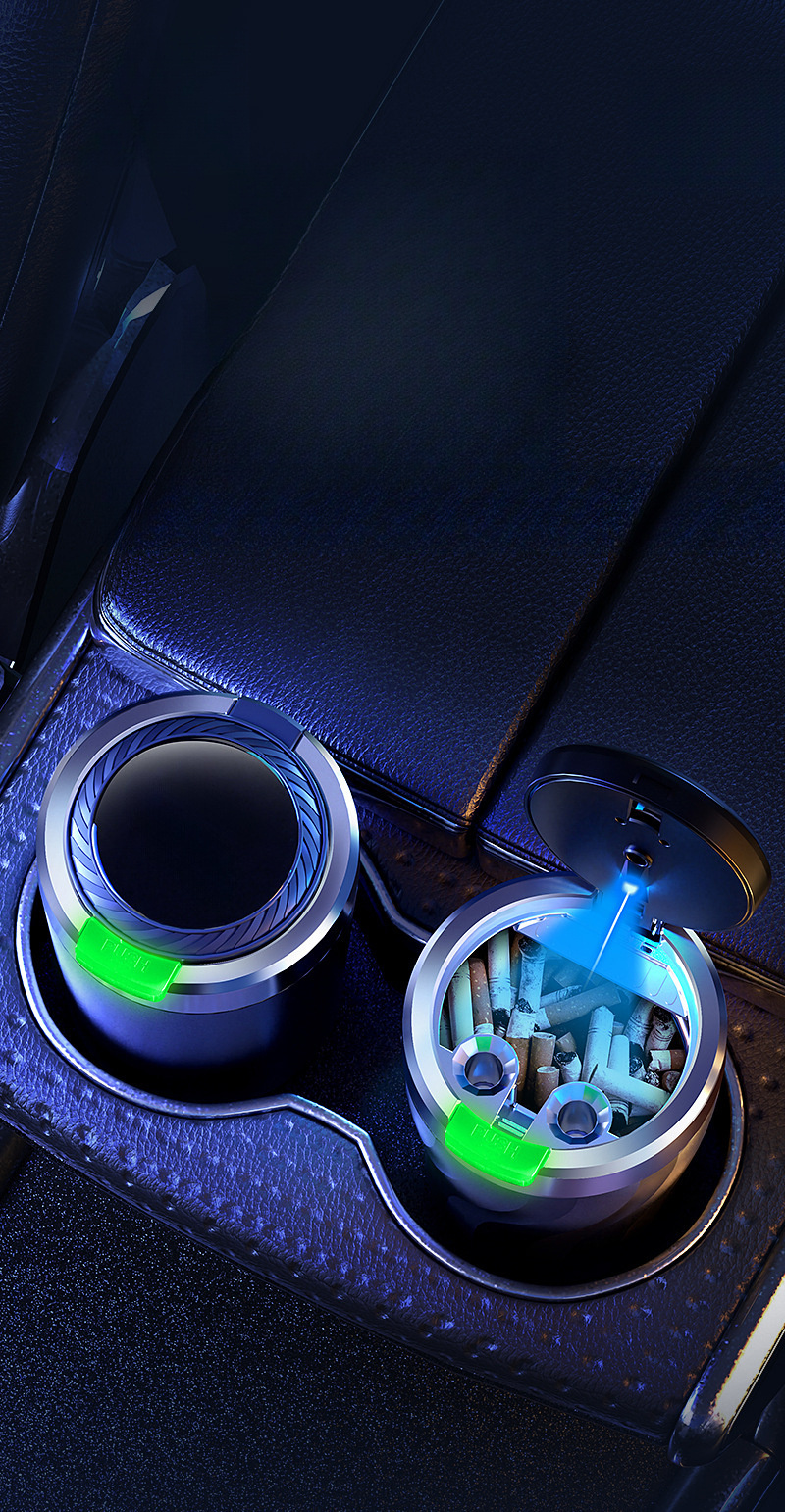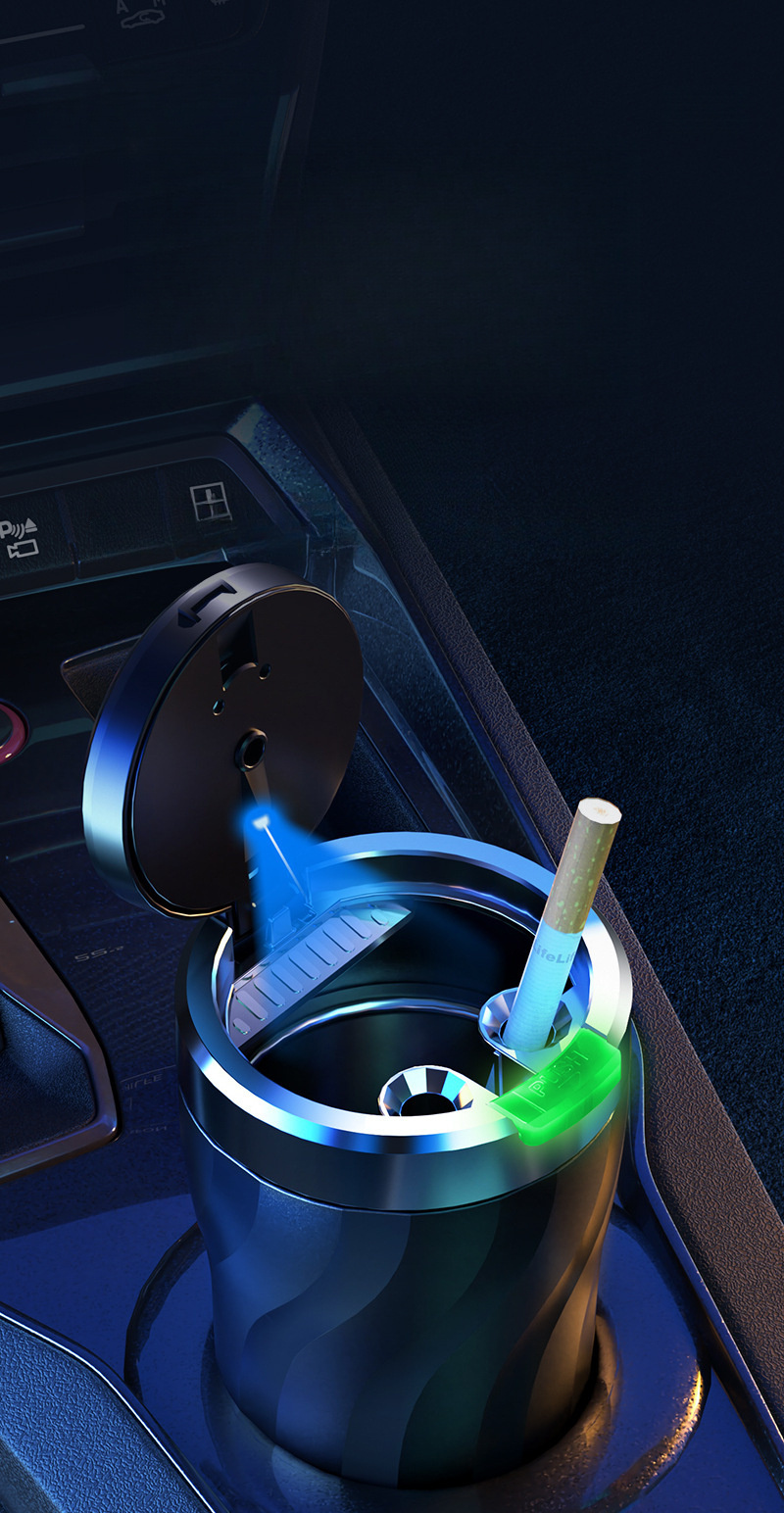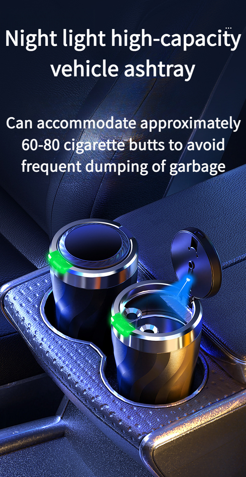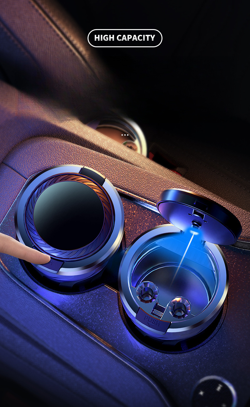 Автомобильная пепельница черная с LED-подсветкой, однокнопочное открытие, большой объем, прочный ABS