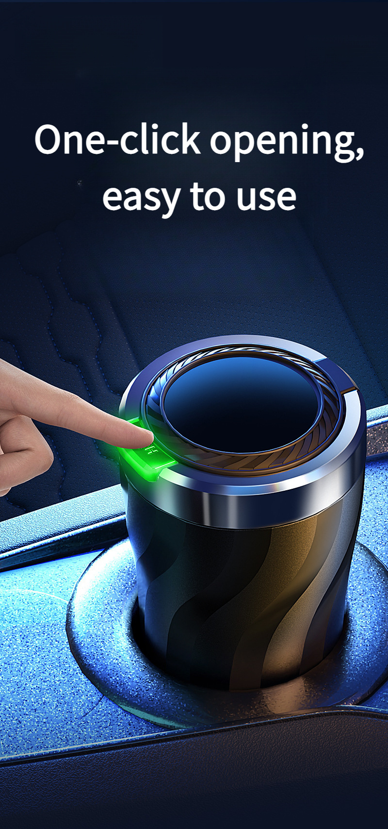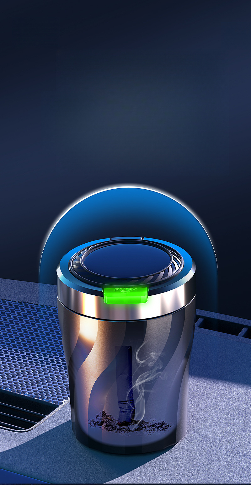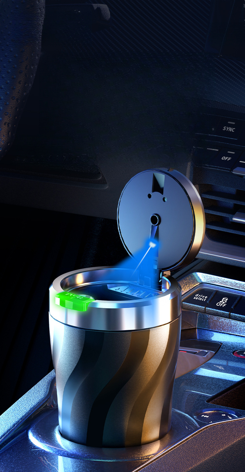 Автомобильная пепельница черная с LED-подсветкой, однокнопочное открытие, большой объем, прочный ABS