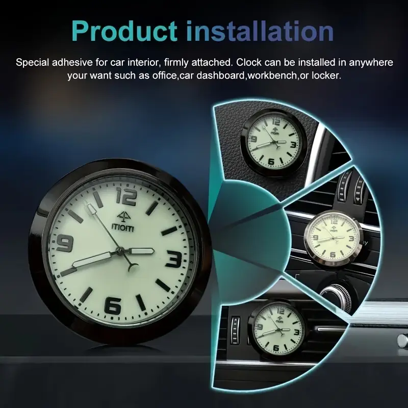 Мини-часовник на приборной панели автомобиля, кварцевый аналоговый, светящийся, декоративные часы